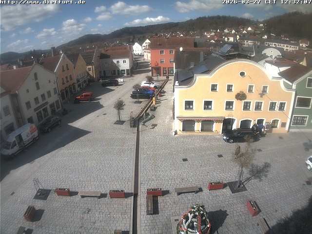 Archived webcam image showing Dietfurt marketplace west on 27 Mar 2026 at 14:44 13:00