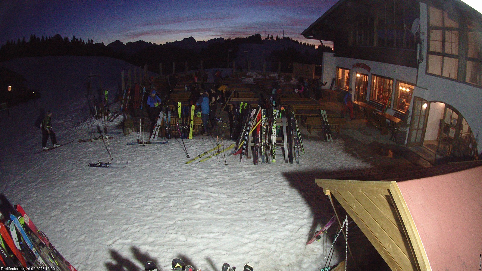 Archived webcam image showing Dreiländereck – Mountain Restaurant on 26 Feb 2026 at 18:56 Latest