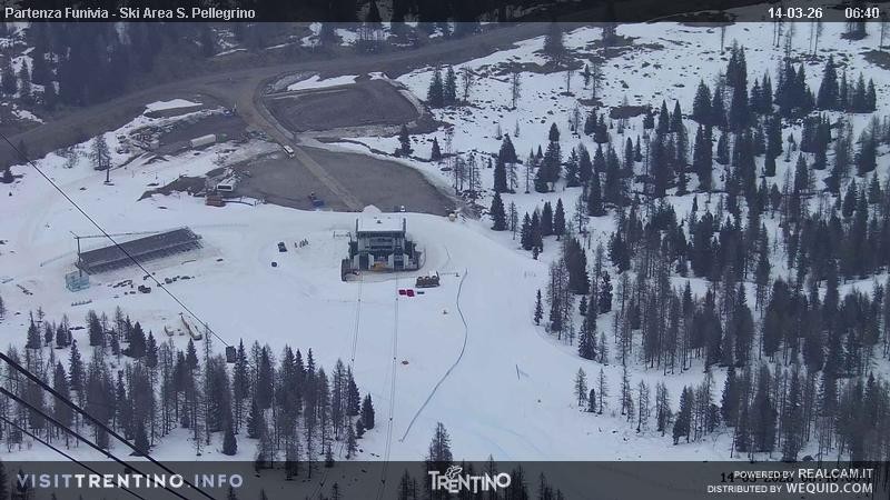 Archived webcam image showing Fassatal - San Pelegrino - panorama view of the ski-piste and liftmachinery of the 06:00