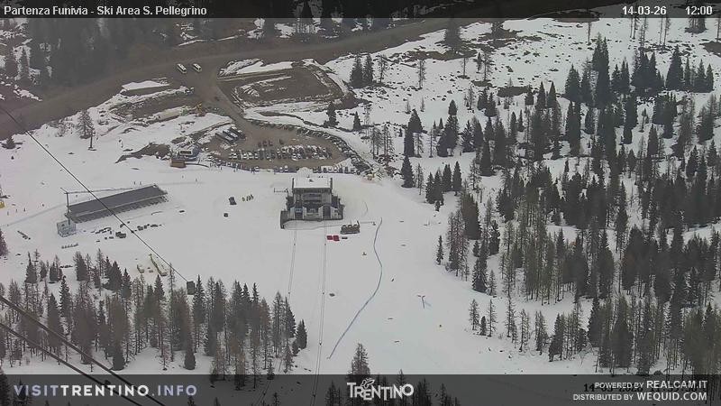 Archived webcam image showing Fassatal - San Pelegrino - panorama view of the ski-piste and liftmachinery of the 11:00