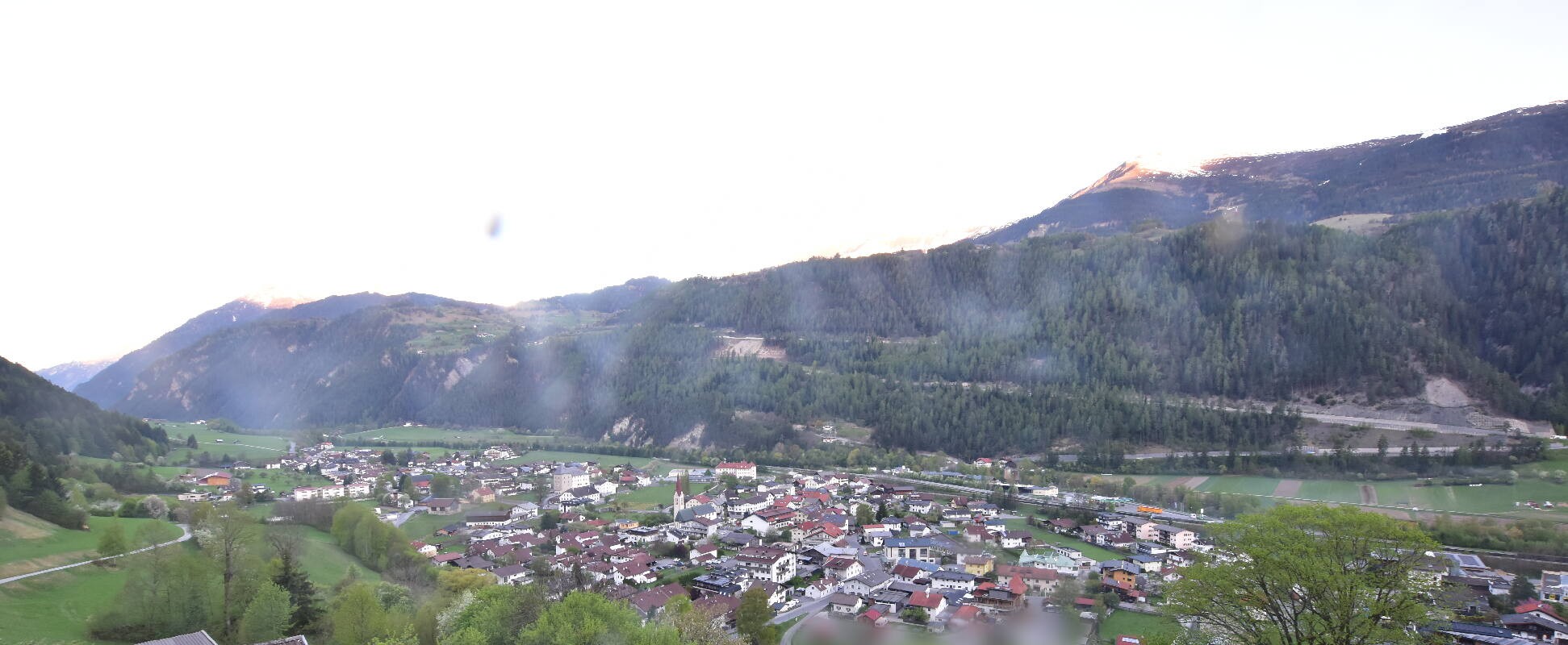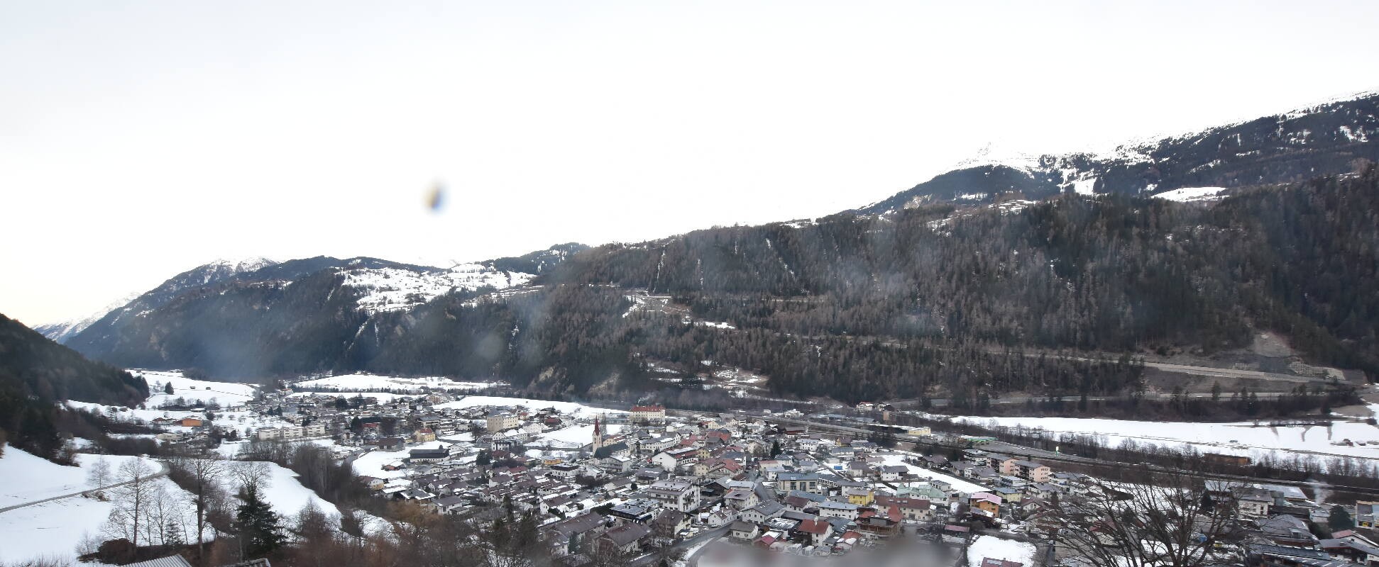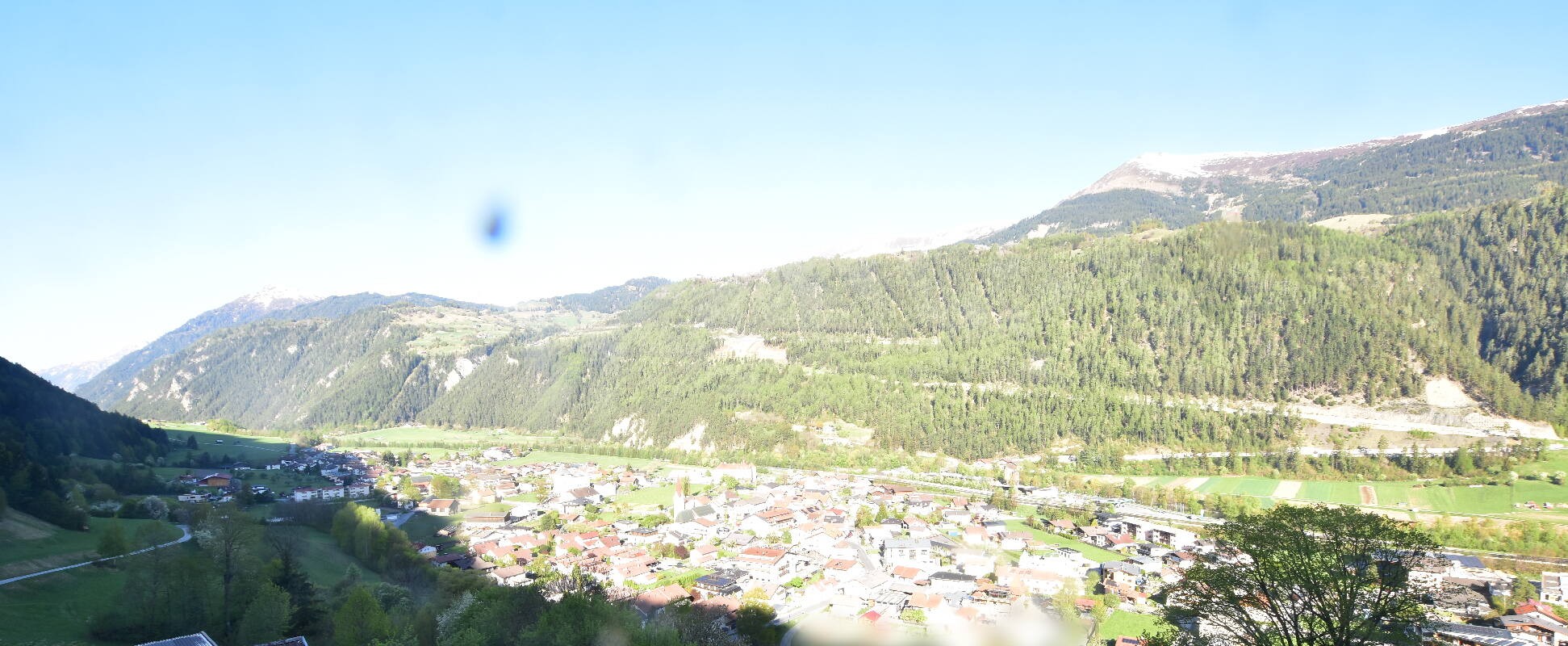 Enjoy the view over Ried im Oberinntal. This is where the Fendels ski area is located. The camera also shows the road up to the Serfaus-Fiss-Ladis ski area.