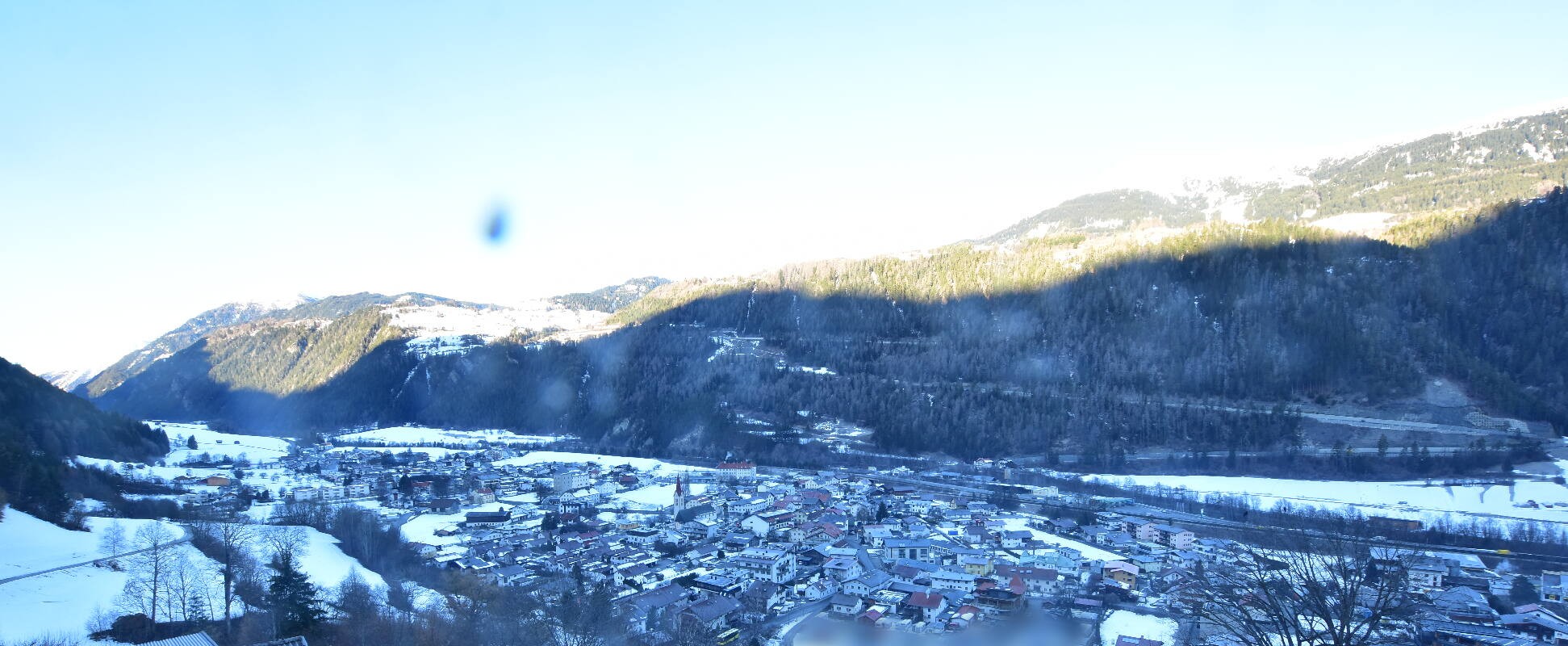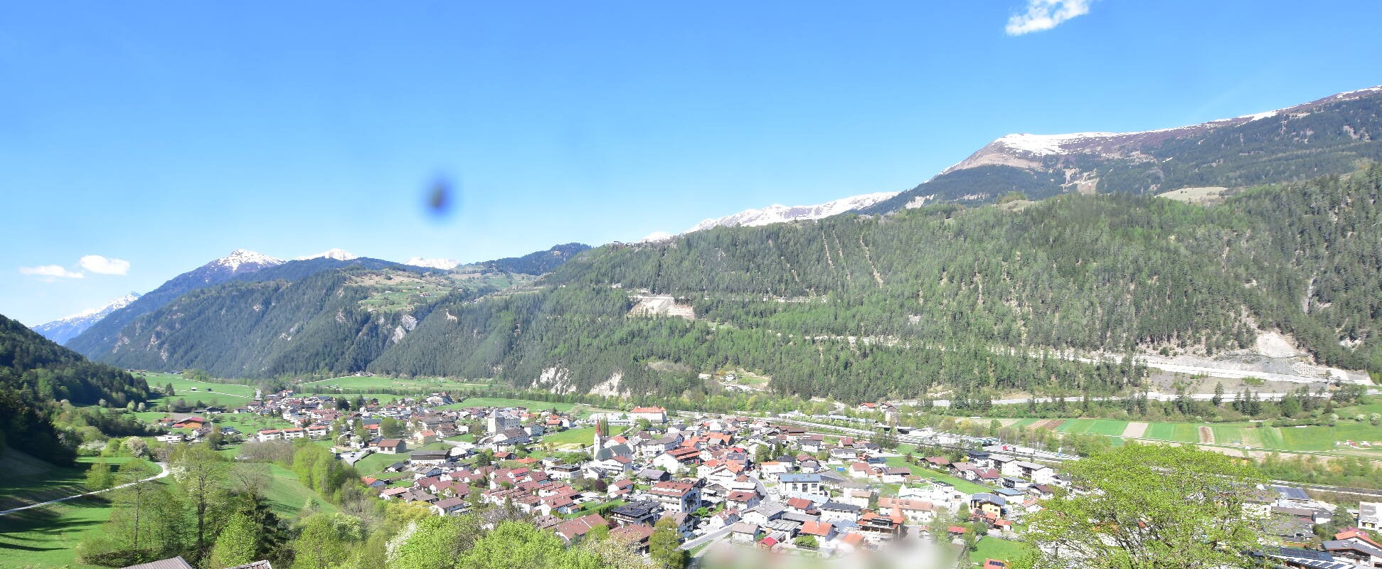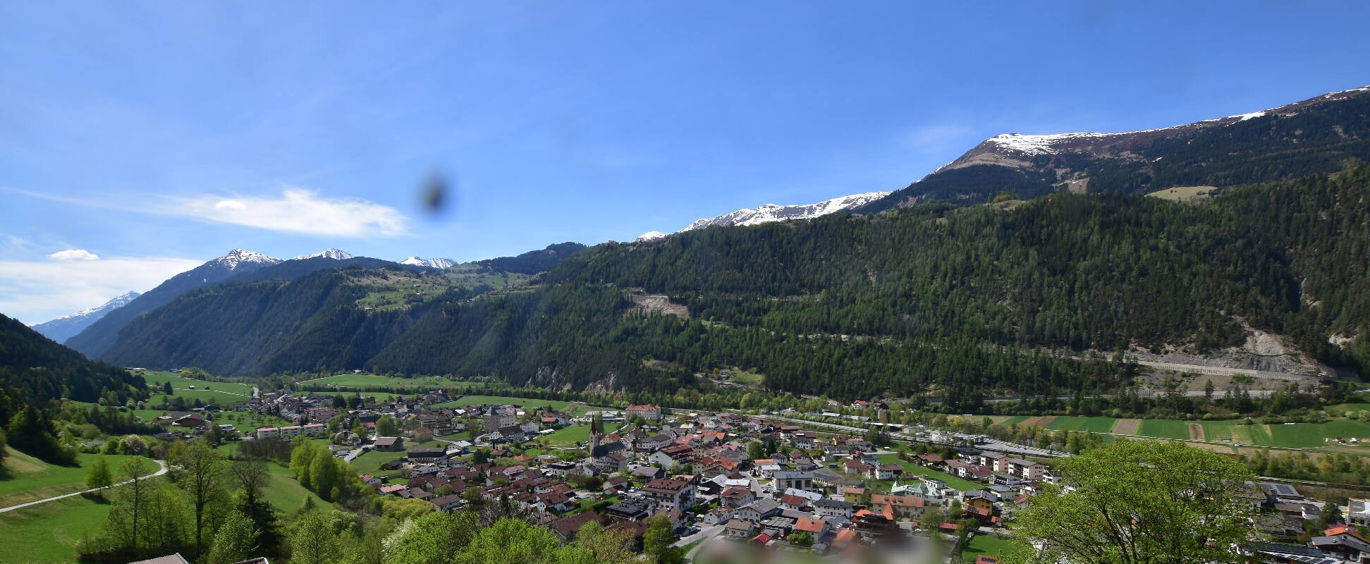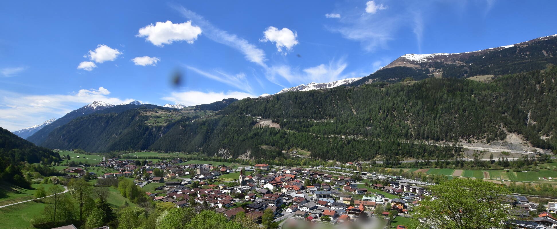 Enjoy the view over Ried im Oberinntal. This is where the Fendels ski area is located. The camera also shows the road up to the Serfaus-Fiss-Ladis ski area.