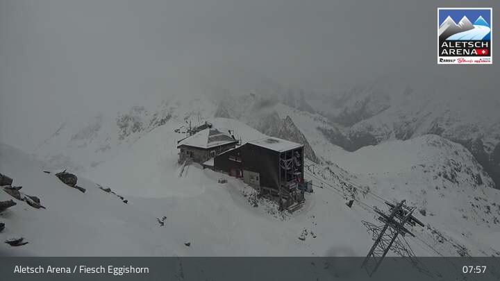 This webcam is located at top station of lift Fiescheralp-Eggishorn in Aletsch Arena in swiss canton Valais.