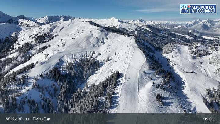 The Flying Cam is flying around the Wildschönau and delivers great aerial shots from the Ski Juwel Alpbachtal Wildschönau ski area at varying intervals. The camera flies through the region again and again on different routes.