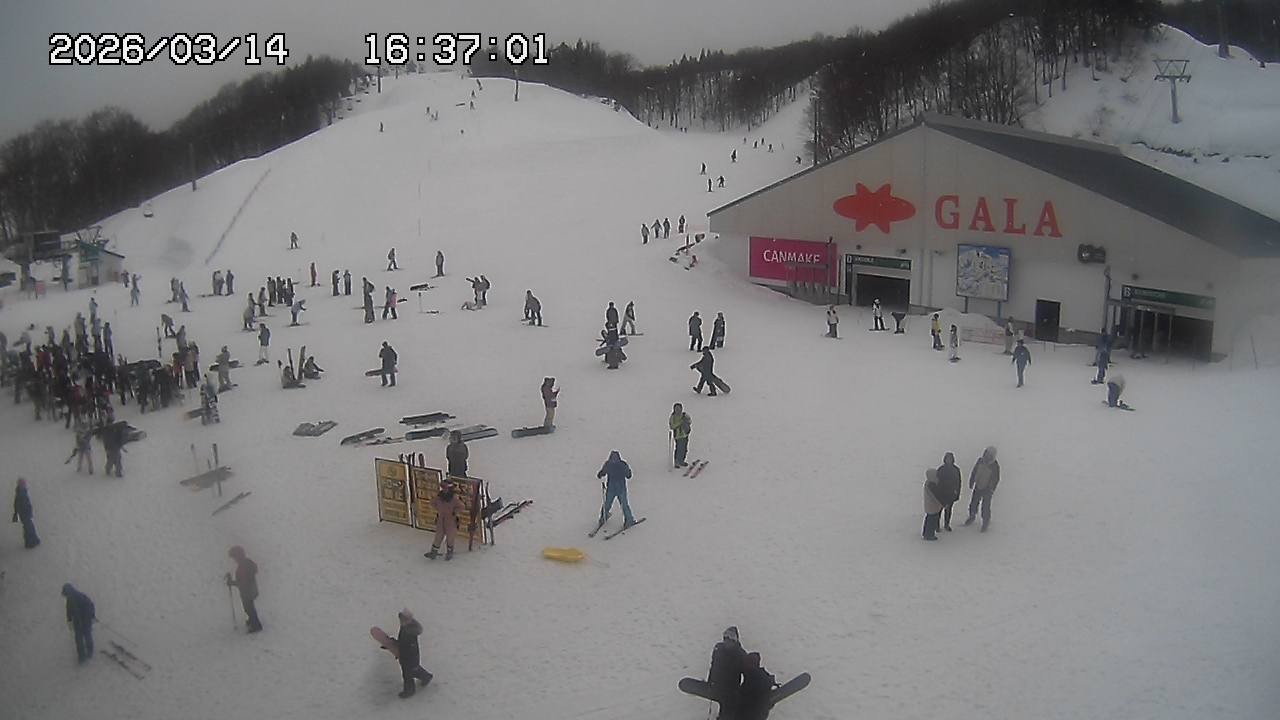 Archived webcam image showing Gala Yuzawa Ski Resort - Central Area on 13 Mar 2026 at 16:26 23:00