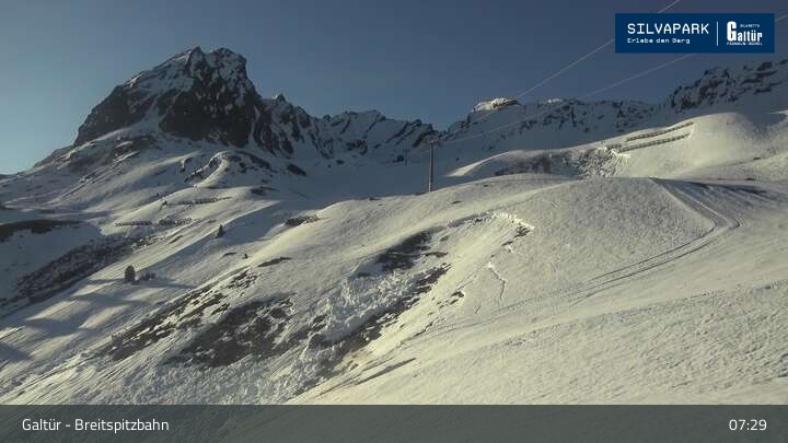 Archived webcam image showing Galtür - Silvapark Breitspitzbahn on 23 Apr 2026 at 07:59 06:00