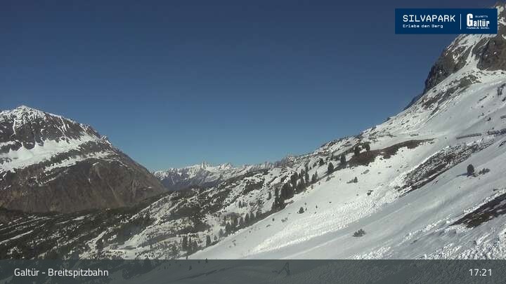 Archived webcam image showing Galtür - Silvapark Breitspitzbahn on 23 Apr 2026 at 17:59 16:00