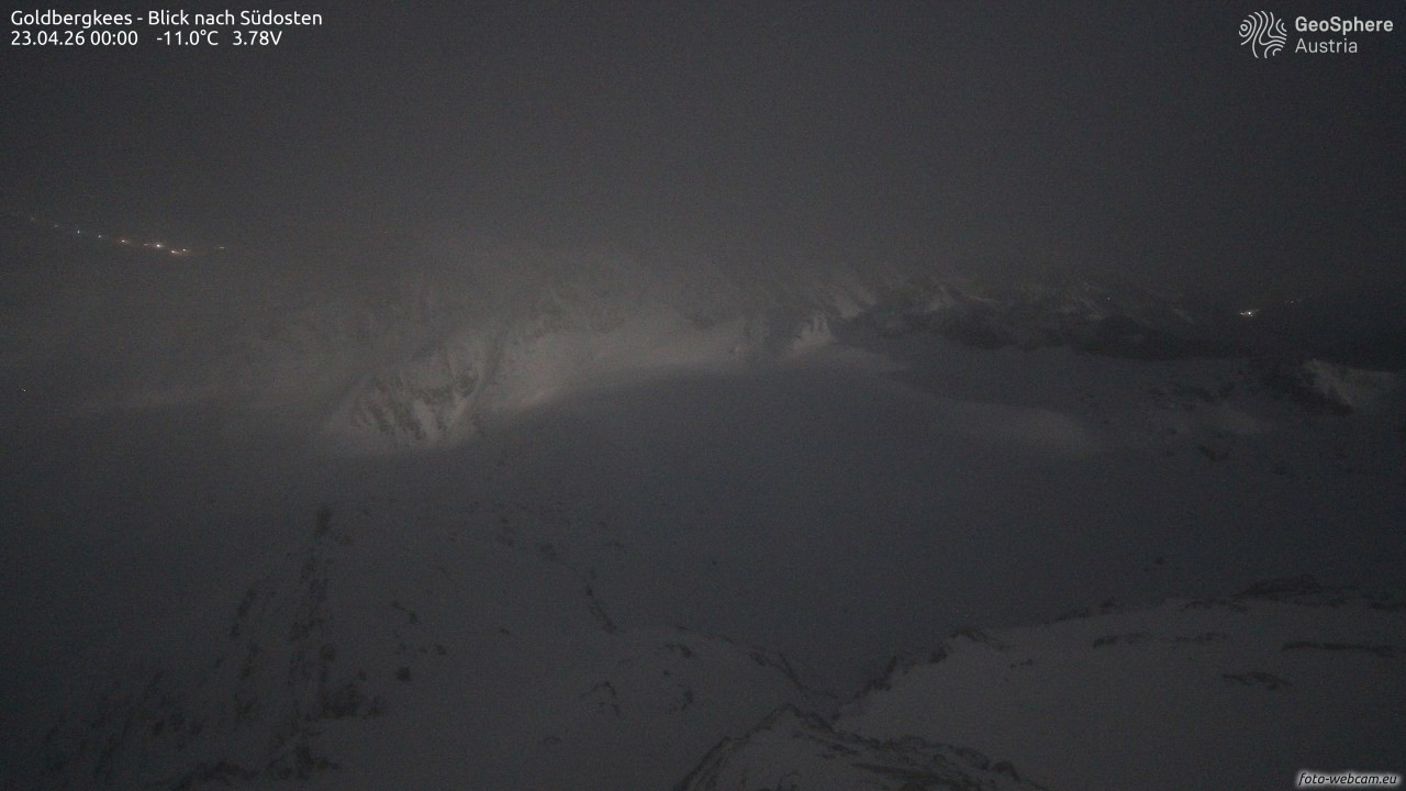 Archived webcam image showing Goldbergkees -View to the Southeast on 23 Apr 2026 at 00:32 23:00
