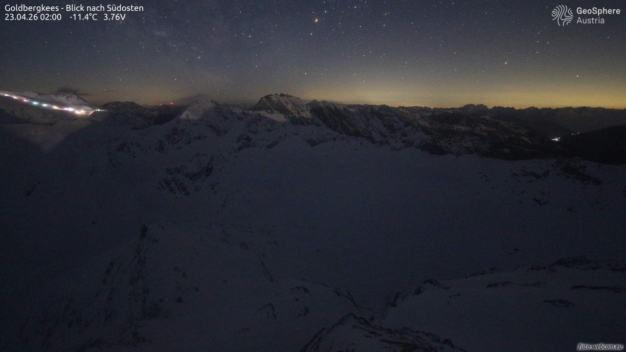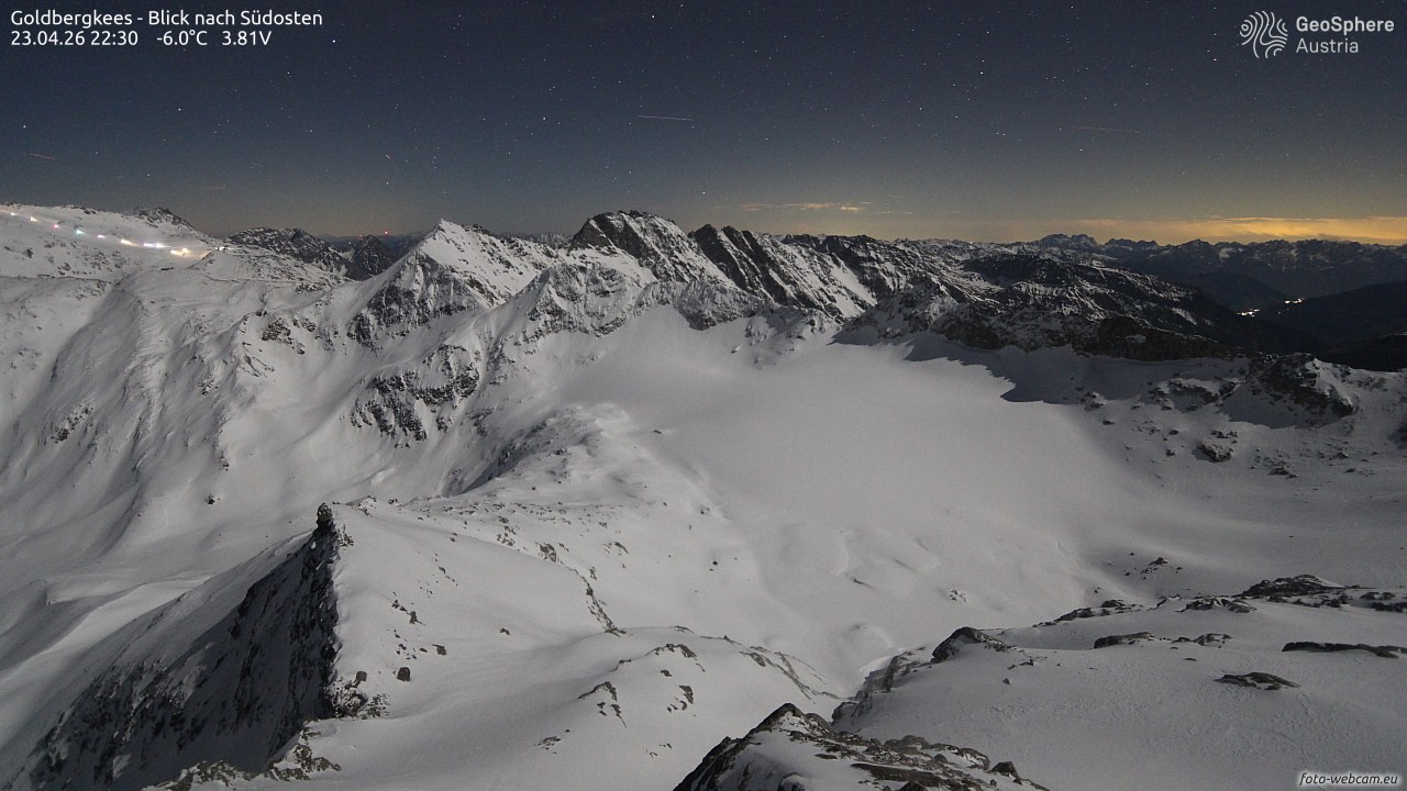 Archived webcam image showing Goldbergkees -View to the Southeast on 23 Apr 2026 at 22:32 Latest