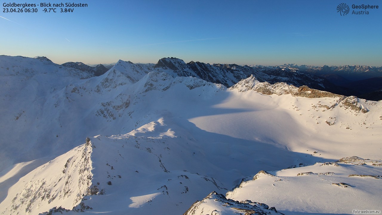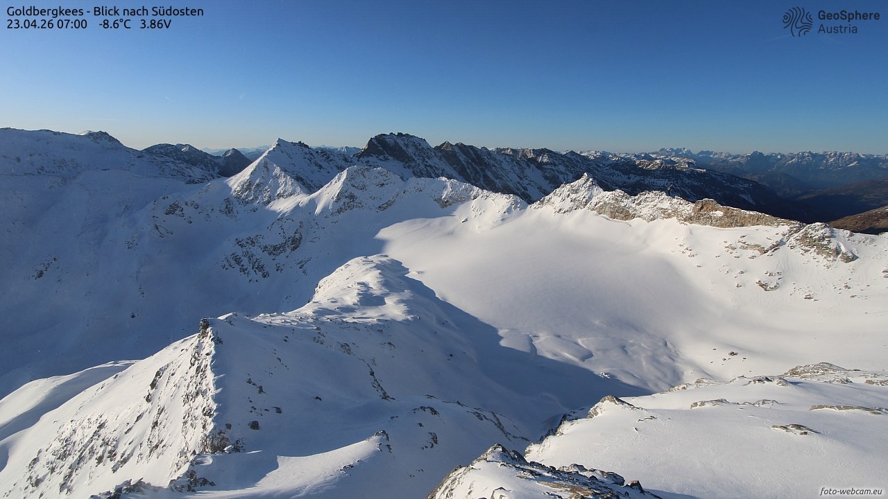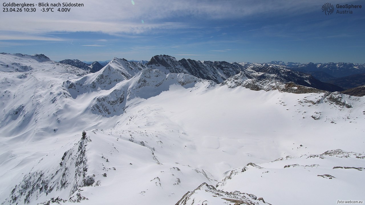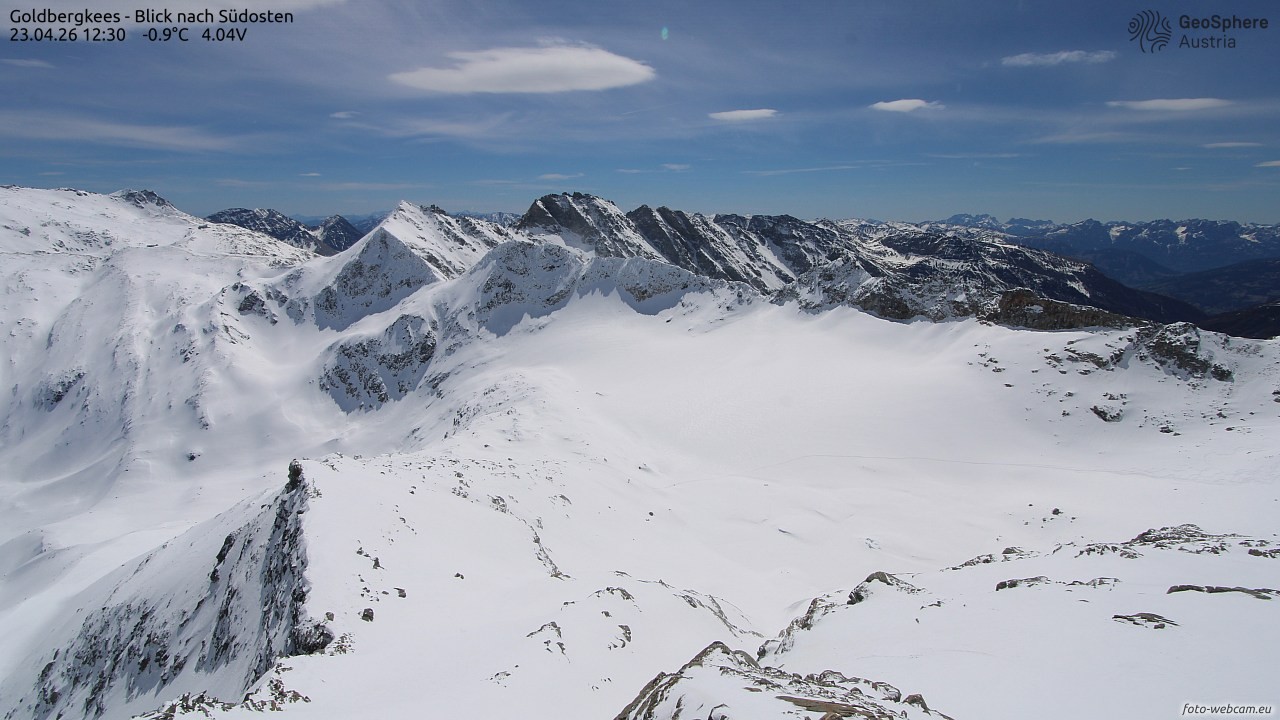 Archived webcam image showing Goldbergkees -View to the Southeast on 23 Apr 2026 at 10:32 09:00