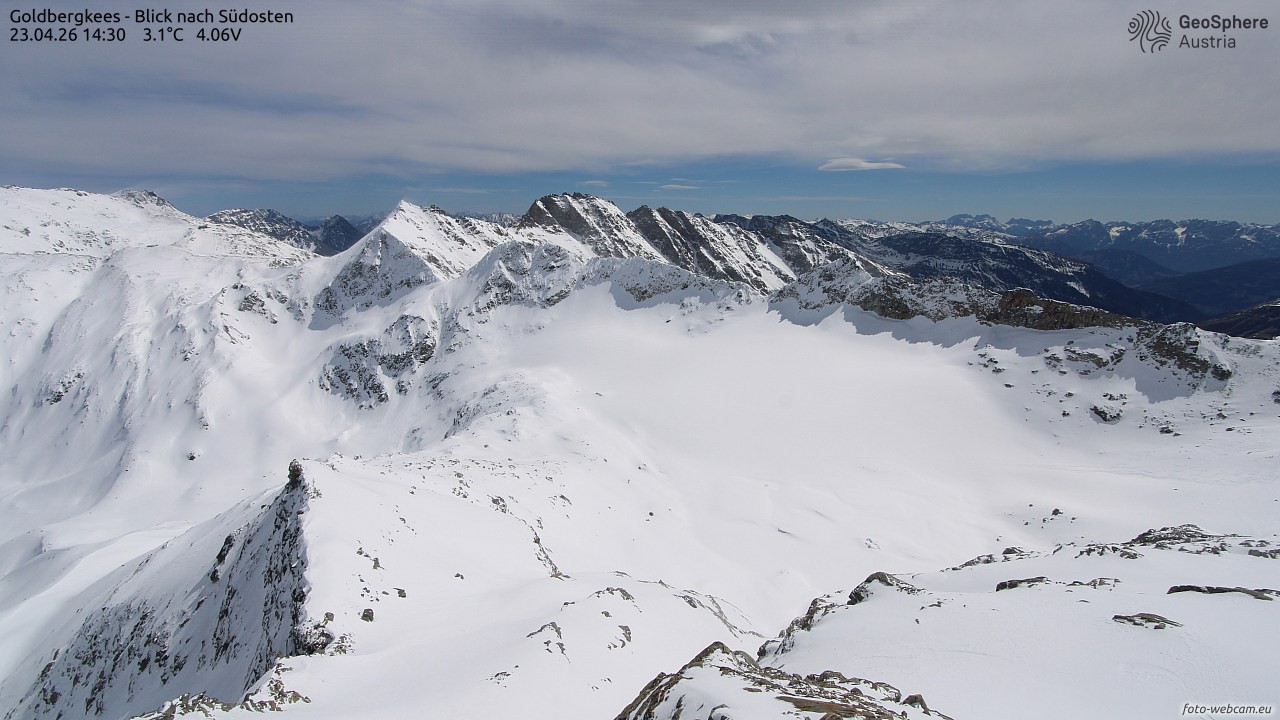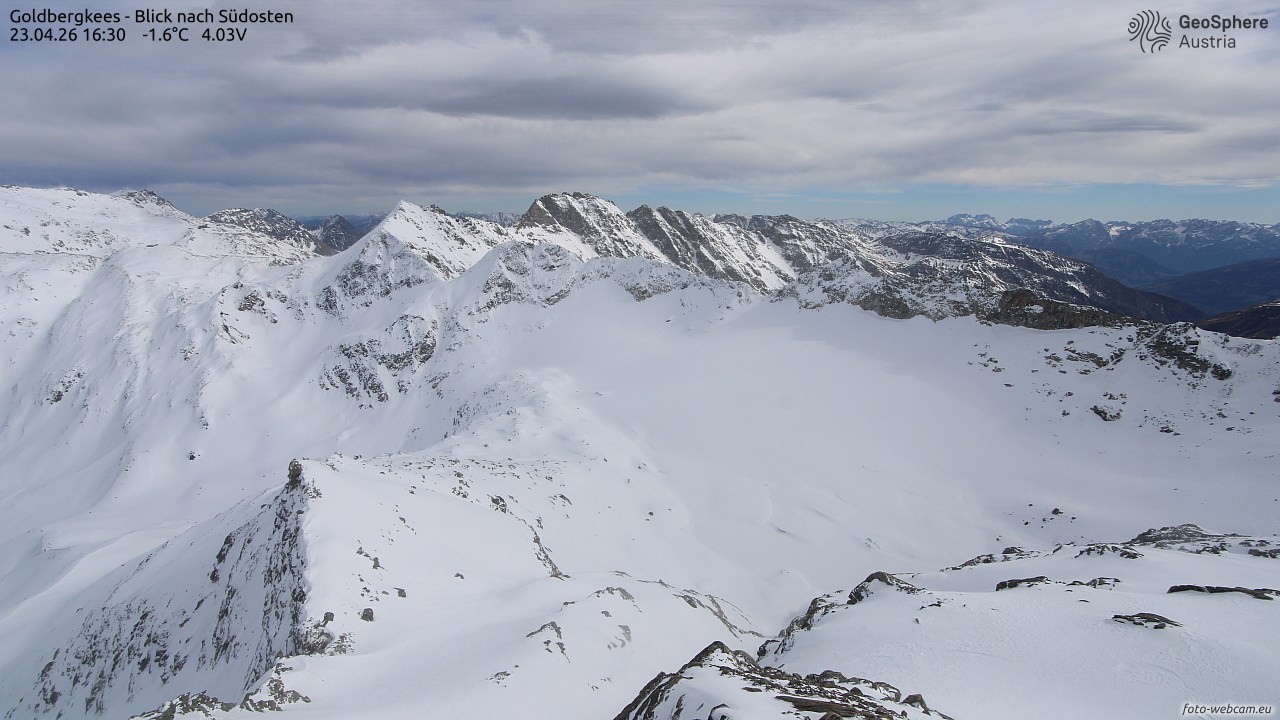 Archived webcam image showing Goldbergkees -View to the Southeast on 23 Apr 2026 at 16:32 15:00