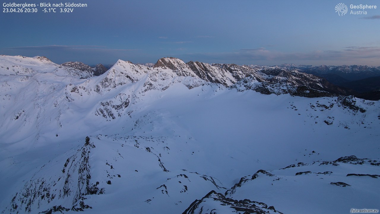 Archived webcam image showing Goldbergkees -View to the Southeast on 23 Apr 2026 at 20:32 19:00