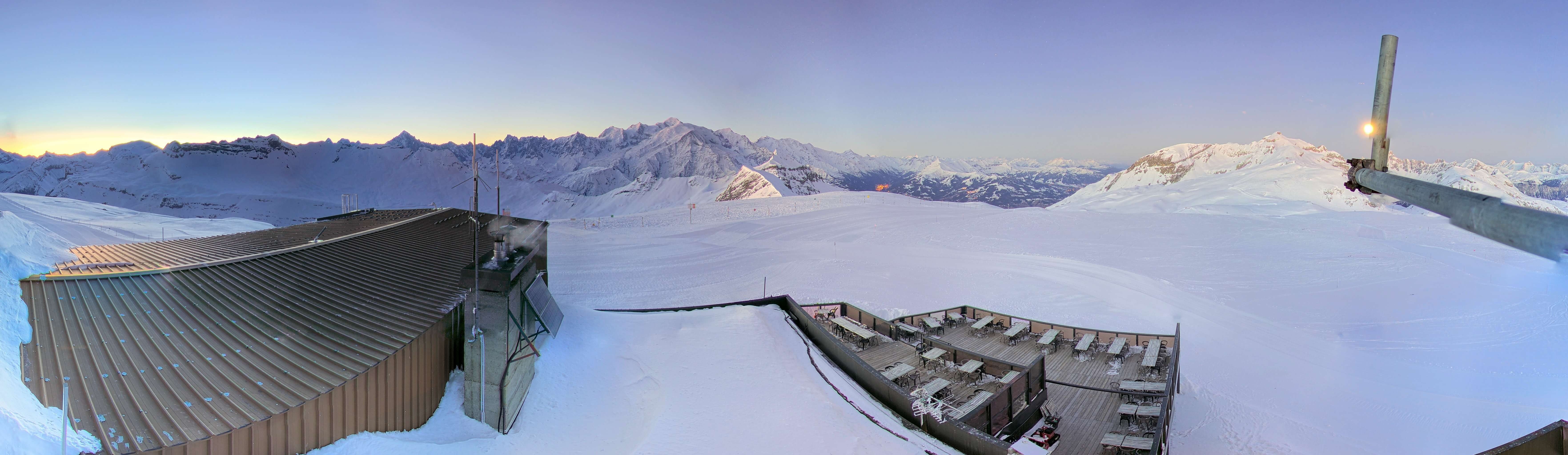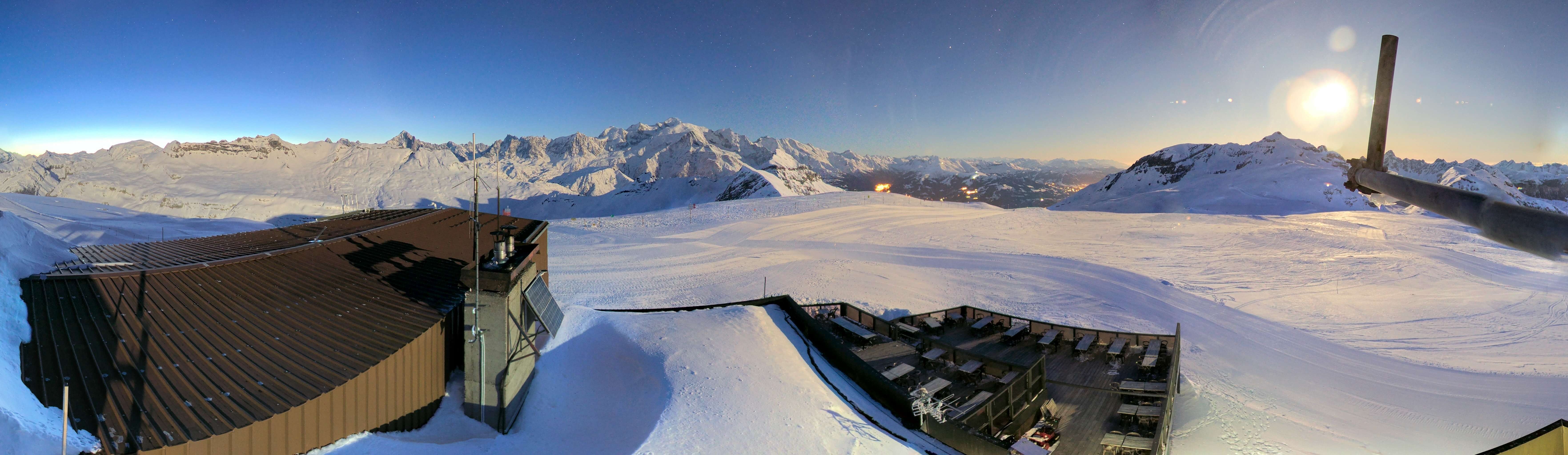The webcam shows the view at the Grandes Platières in the french ski resort Flaine.