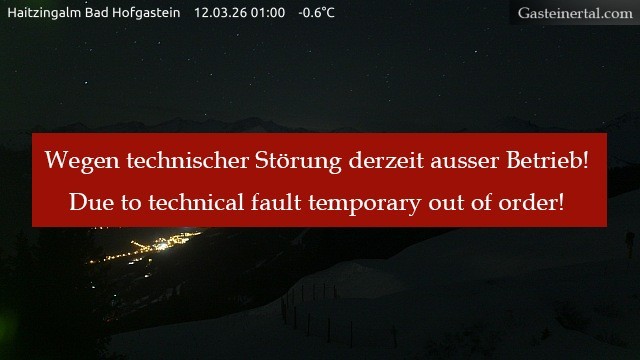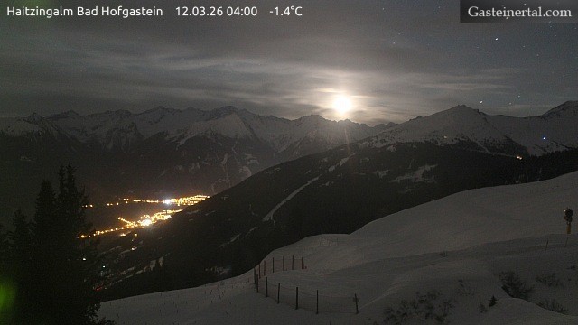 Archived webcam image showing Haitzingalm at Bad Hofgastein Ski Resort on 12 Mar 2026 at 00:51 23:00