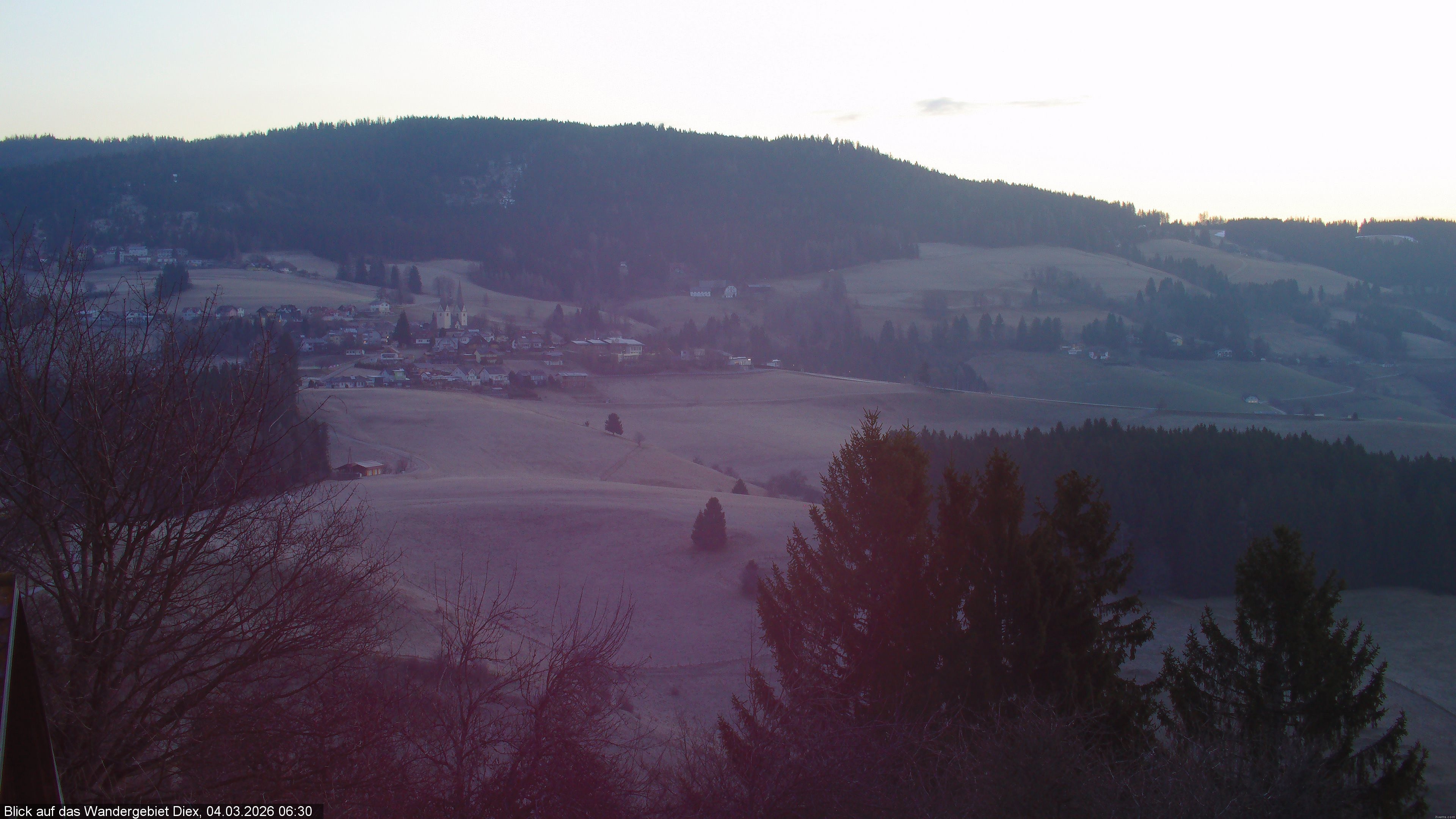 Archived webcam image showing Hiking area Diex on 4 Mar 2026 at 06:45 05:00