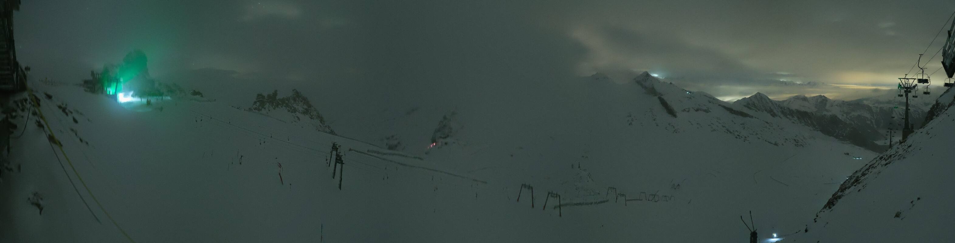 The webcam is located at the mountain station of the Gefrorene Wand chairlift and looks down on the slopes at Hintertux Glacier in the Zillertal. Opposite is the 3,476 meter high Olperer peak.