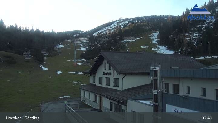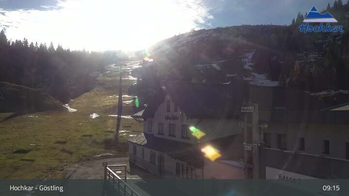 The webcam shows the base station at Hochkar in ski resort Hochkar-Göstling. You can see the chairlifts "Hochkar Vorgipfel" and "Häsing".