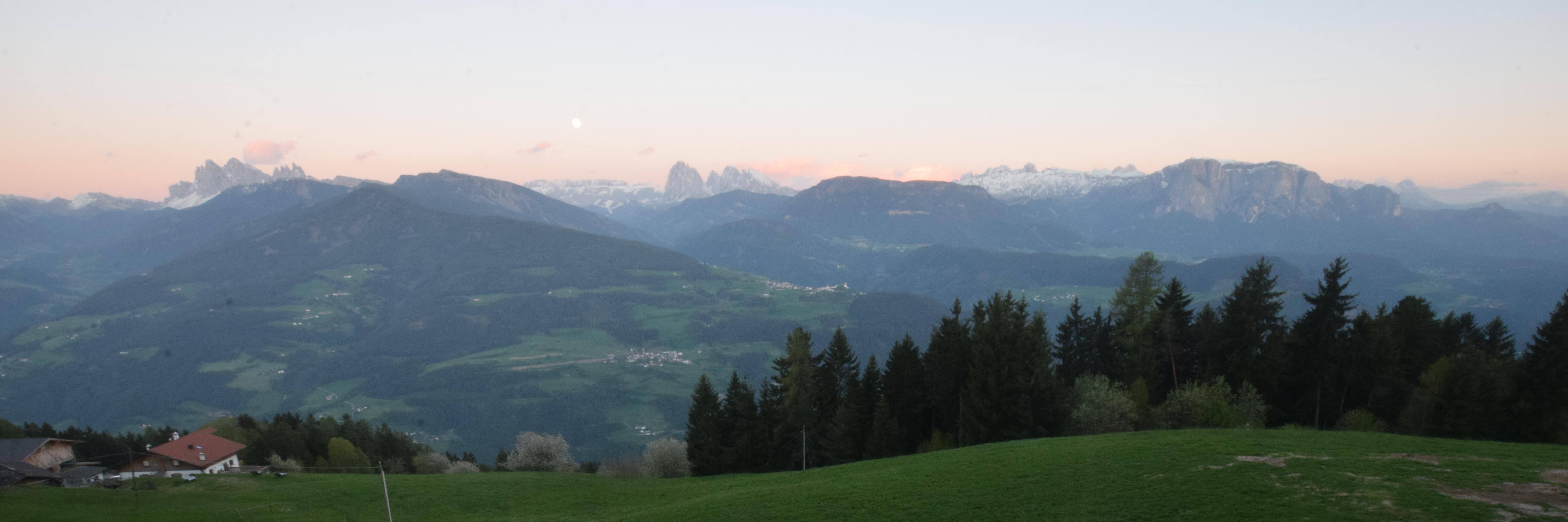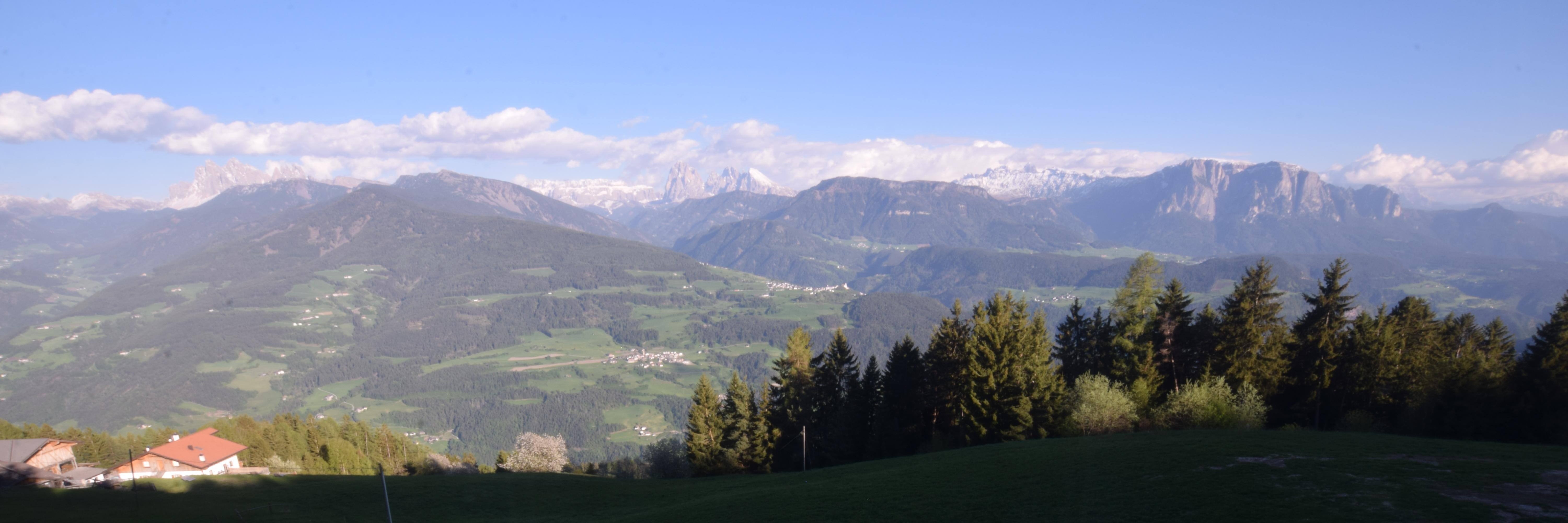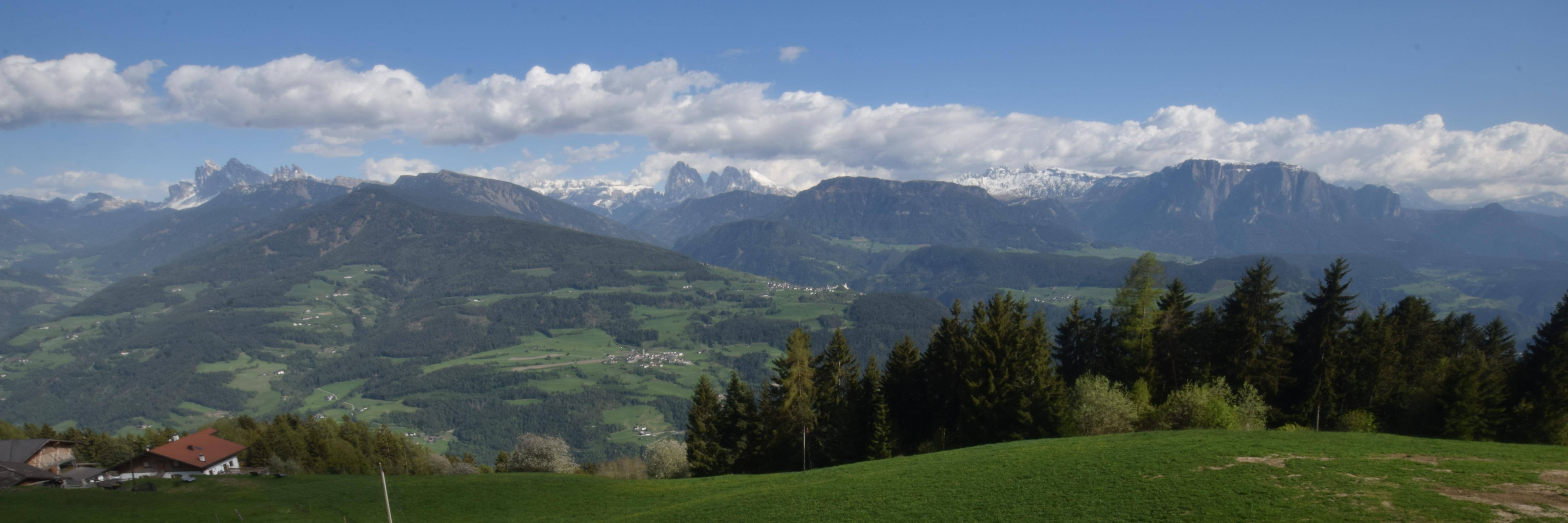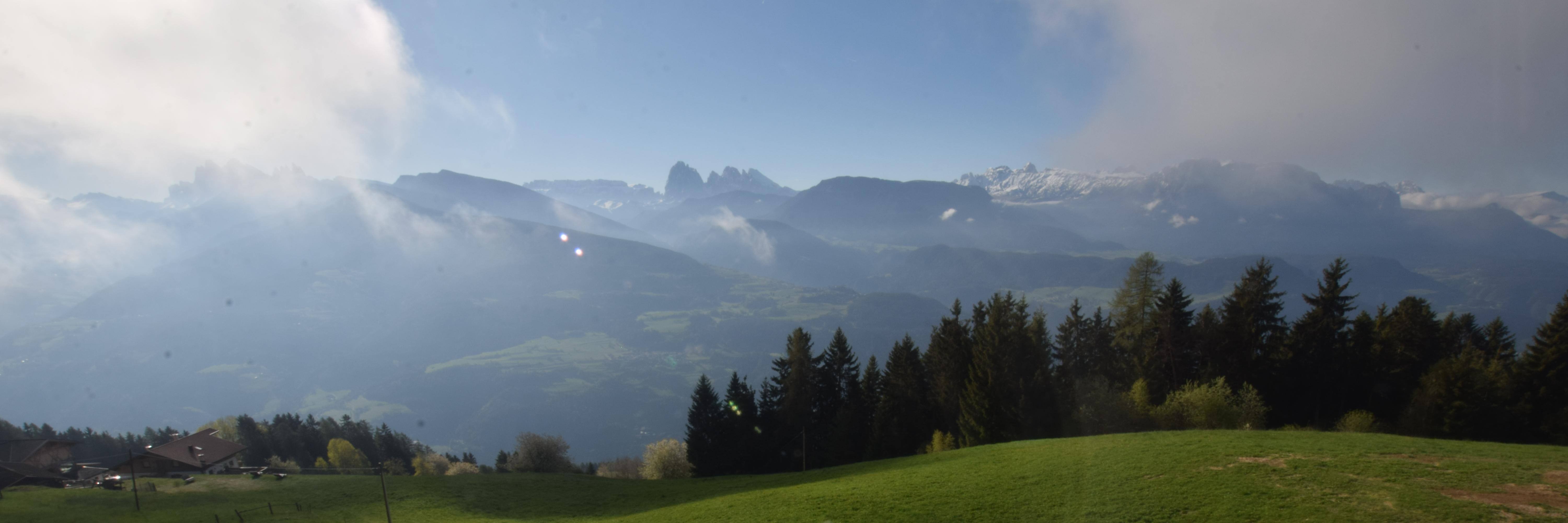 This webcam is located at the Panoramahotel Sambergerhof. It gives you a perfect view of some of the most famous peaks: the Sella (2696 m), the Saslonch (3182 m), and the Rosengartenspitze (3004 m).