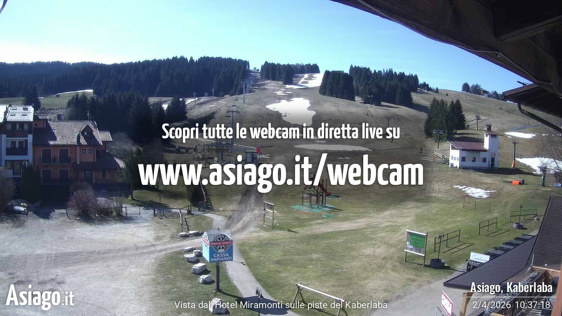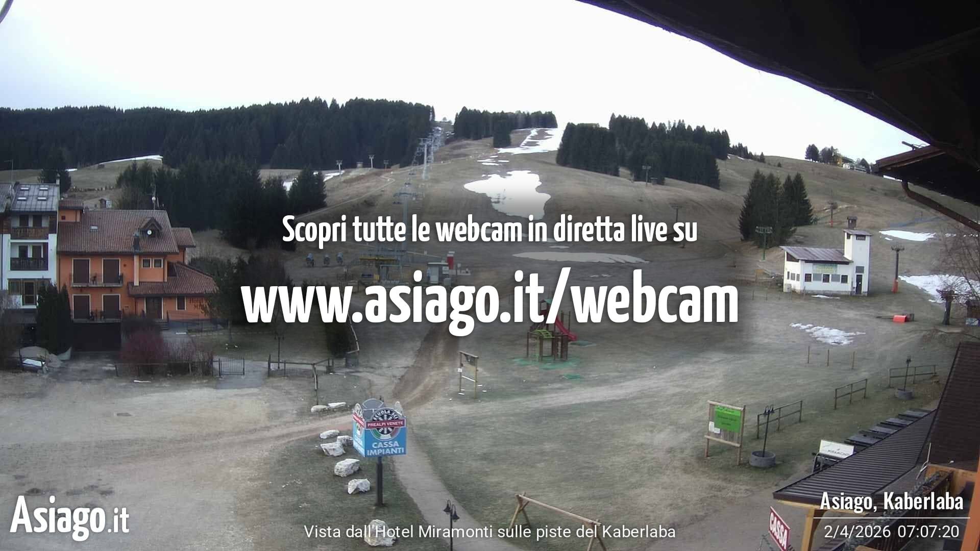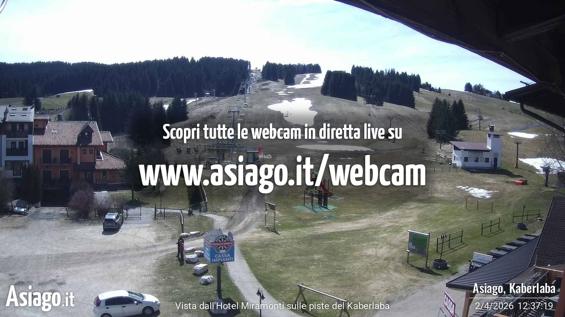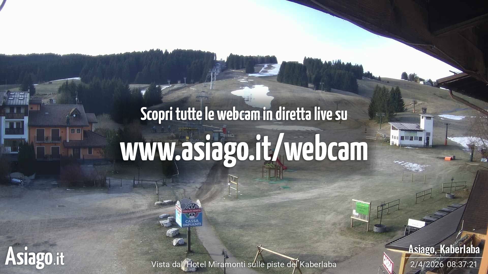 The webcam is located at the base station of the Kaberlaba ski resort in Italy.