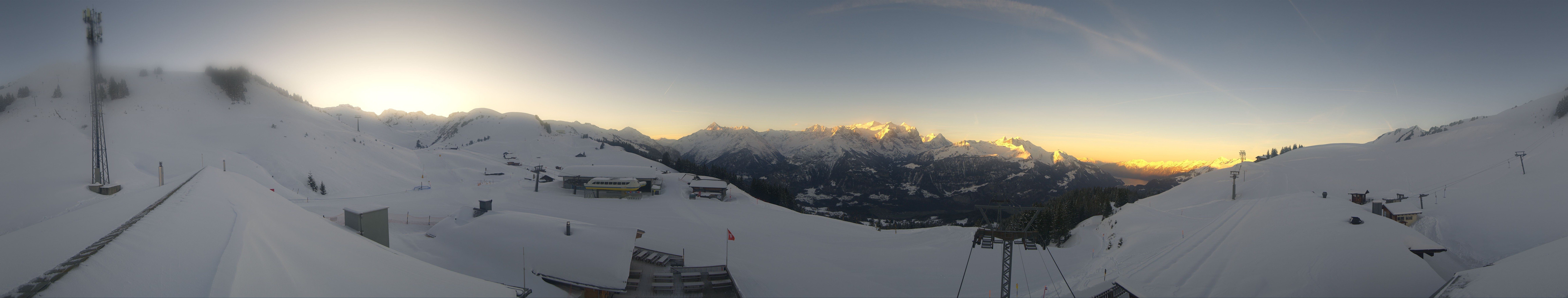 This roundshot cam is located at the mid-station Kaeserstatt at Meiringen Hasliberg in Switzerland and provides a fantastic 360-degree view of the ski resort.