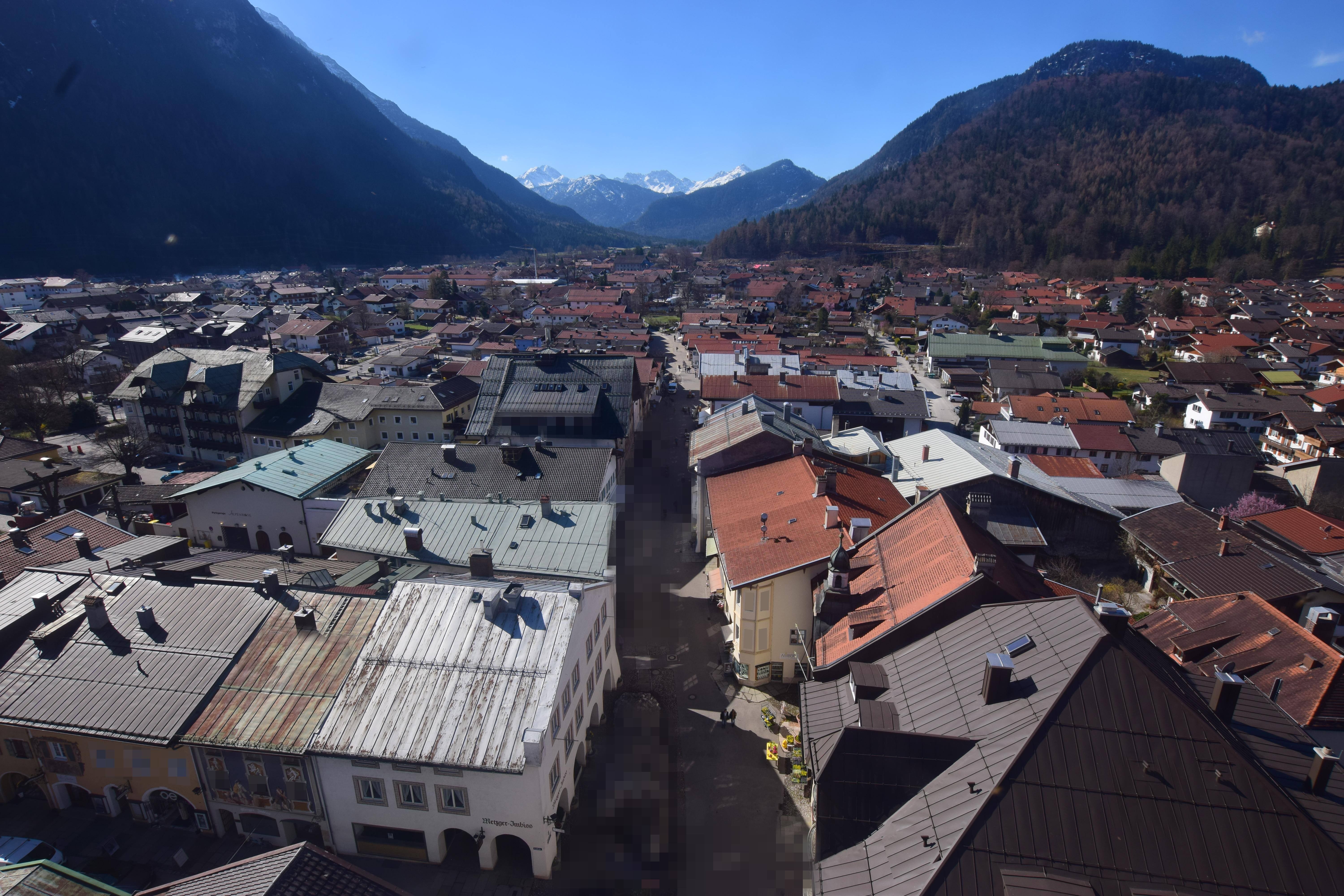 The webcam shows the view from church St. Peter and Paul over the town of Mittenwald. This is where the ski resort Karwendel Mittenwald is located.