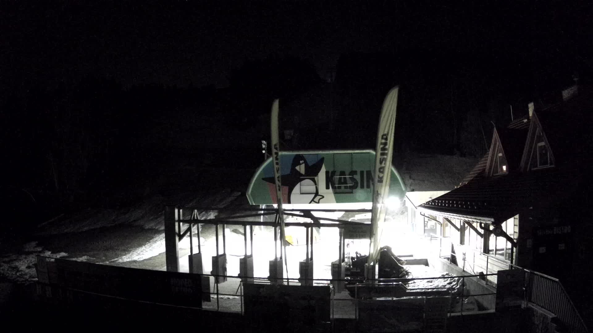 You can see the base station of the 6-seater chair lift in the Polish ski resort Kasina at the 1,007-metre-high Śnieżnica.