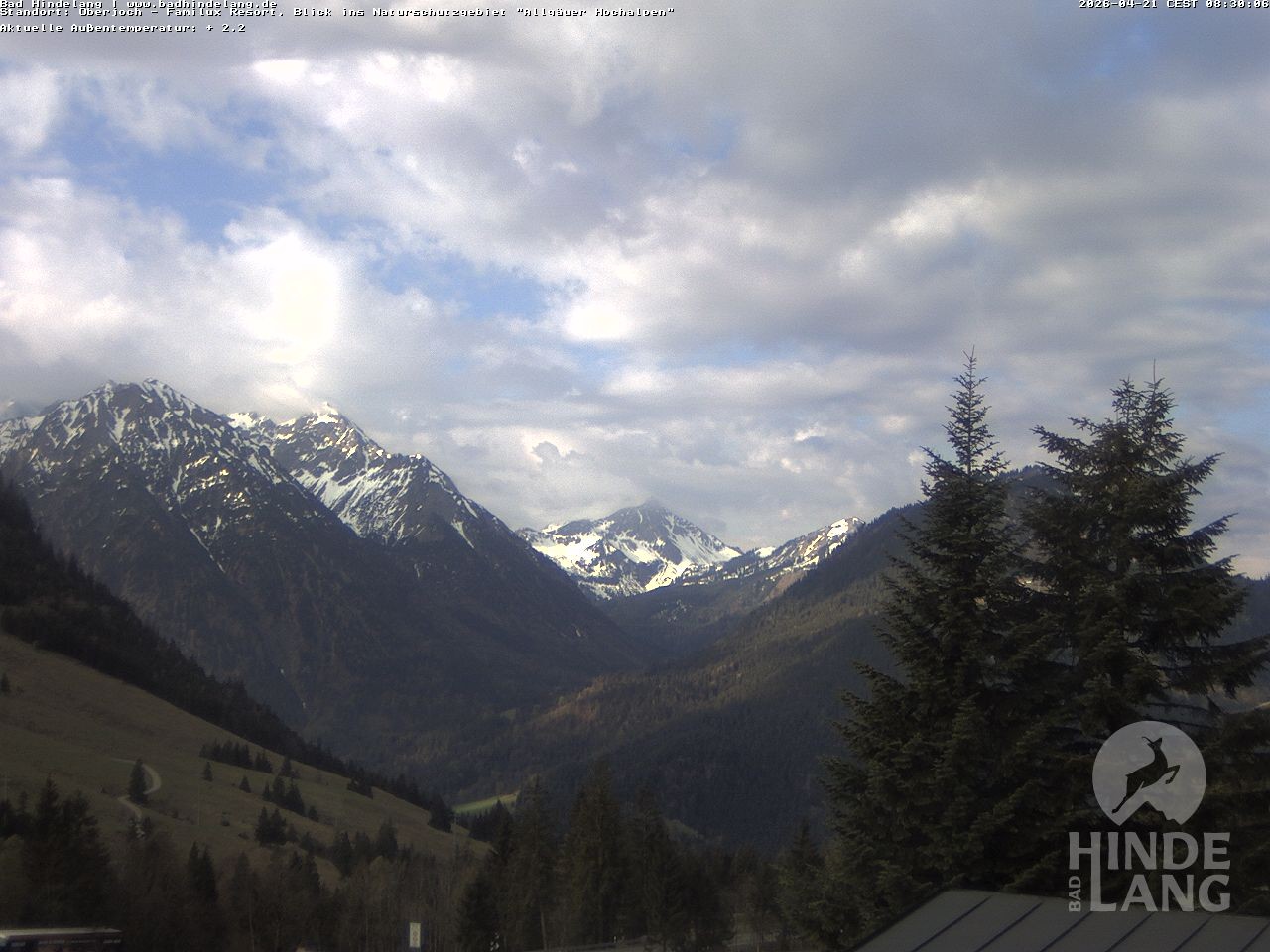 Archiviertes Webcam Bild: Oberjoch: Blick vom Familux Resort auf die Allgäuer Hochalpen am 21.04.2026 um 08:33 Uhr Latest