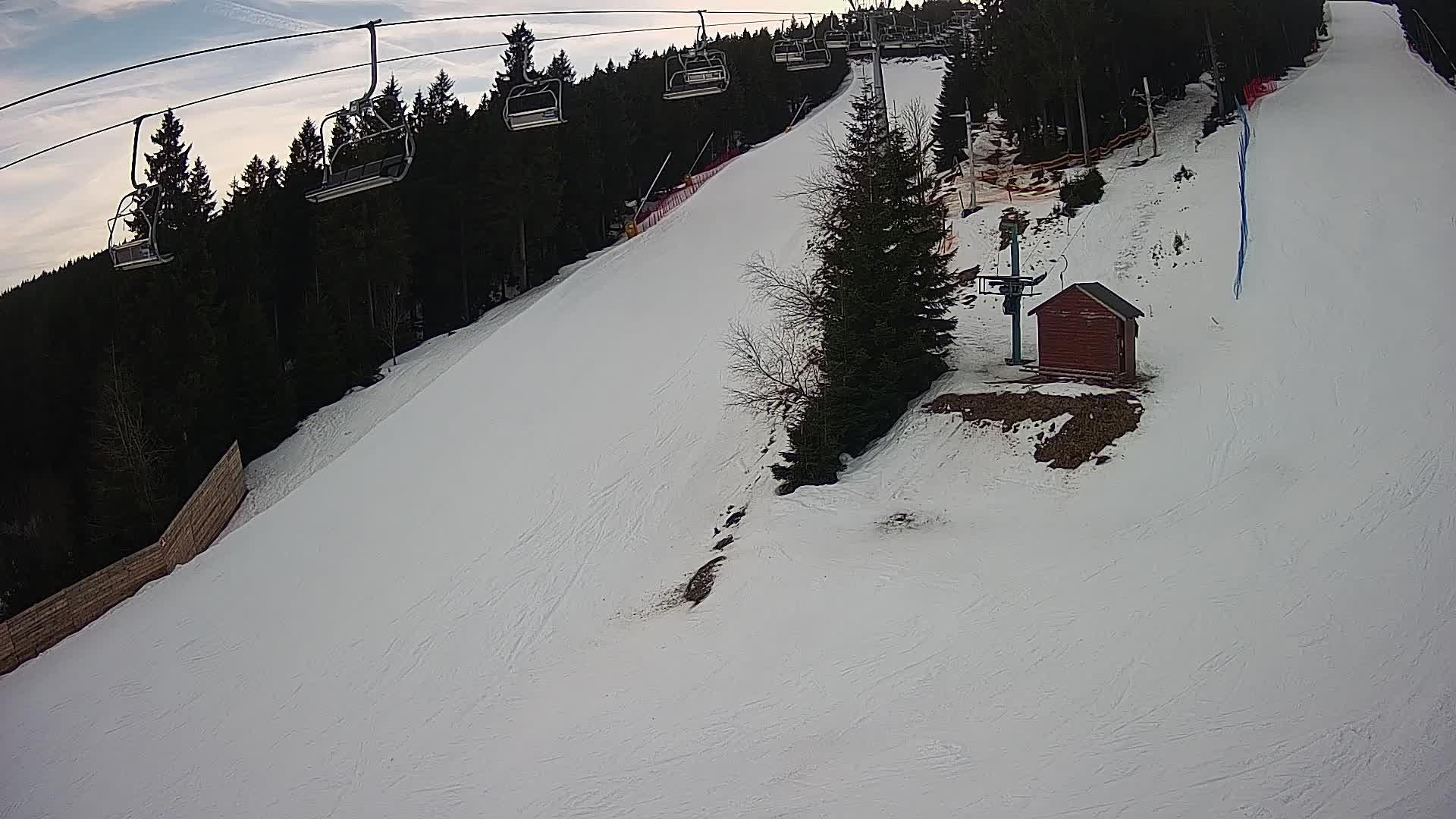 Archived webcam image showing Klinovec: Chair Lift Suzuki on 26 Feb 2026 at 07:20 06:00