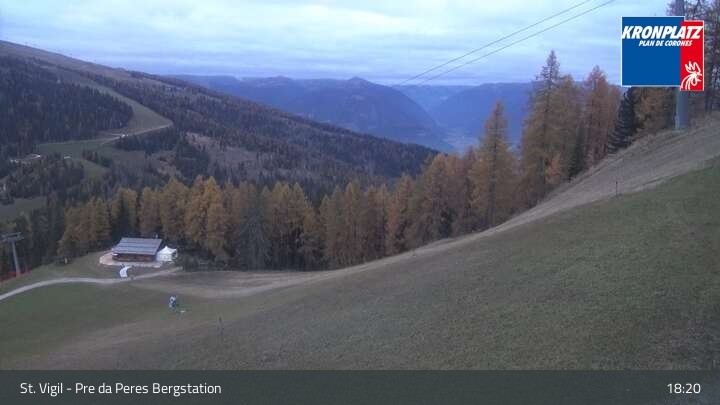 This webcam looks upon the top station of gondola Pre da Peres at the South Tyrolean ski resort Kronplatz. From here you can ski the black run Pre da Peres 1 or the red Pre da Peres 2.