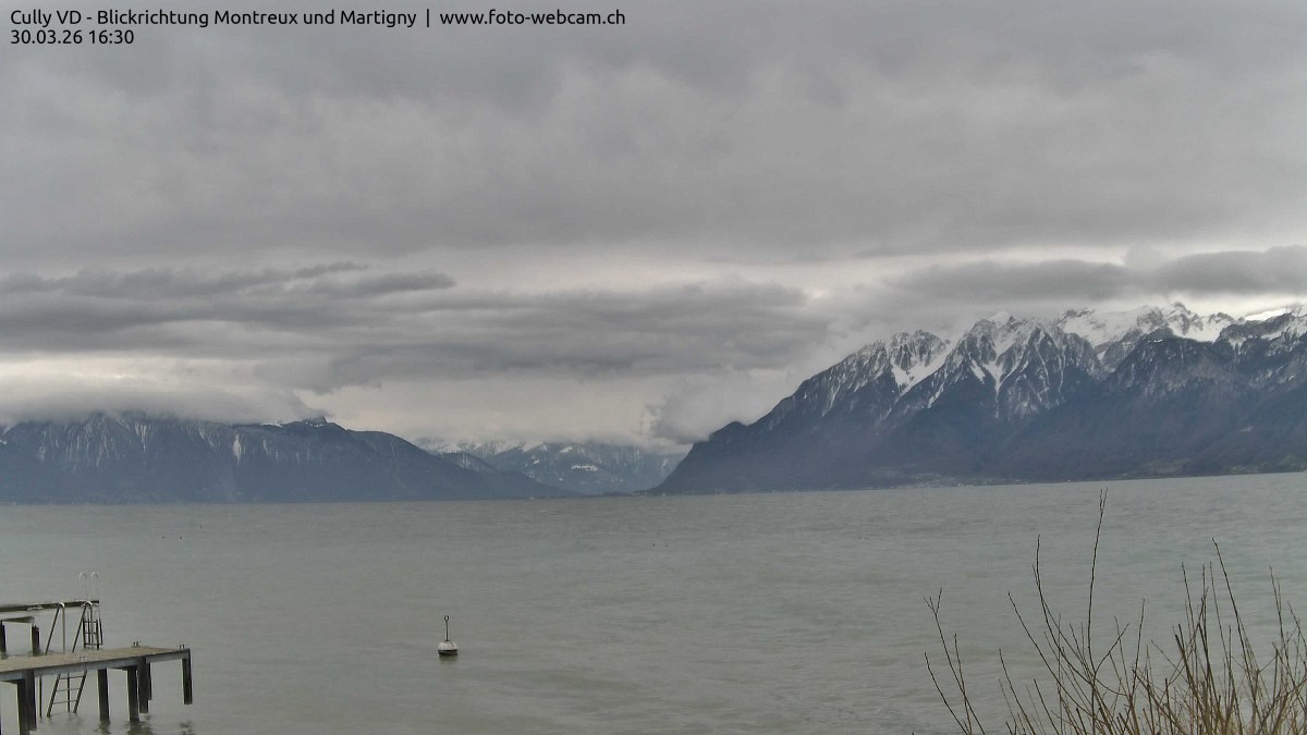 Enjoy the view from Cully VD over Lake Geneva towards Montreux in Switzerland.