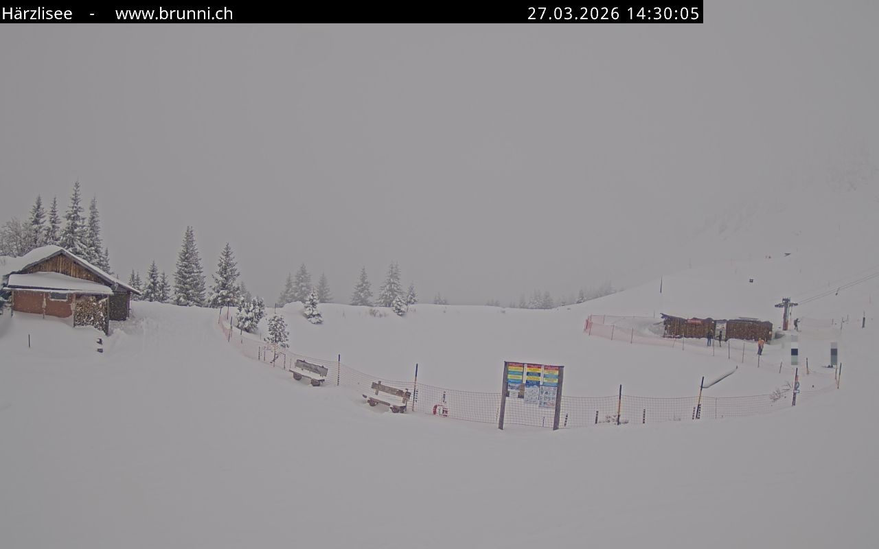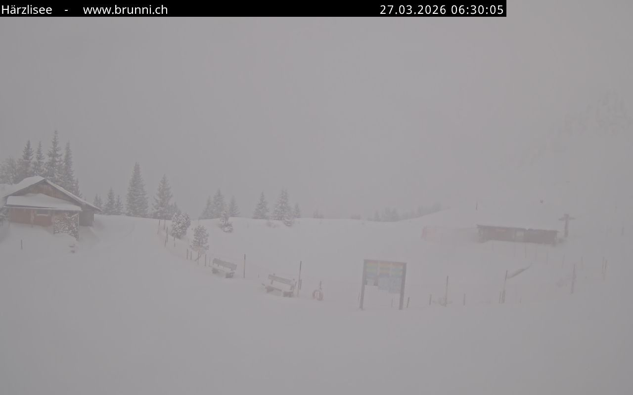 Archived webcam image showing Engelberg: Lake Härzlisee & mountain restaurant Kräuterhütte on 27 Mar 2026 at 04:00 03:00