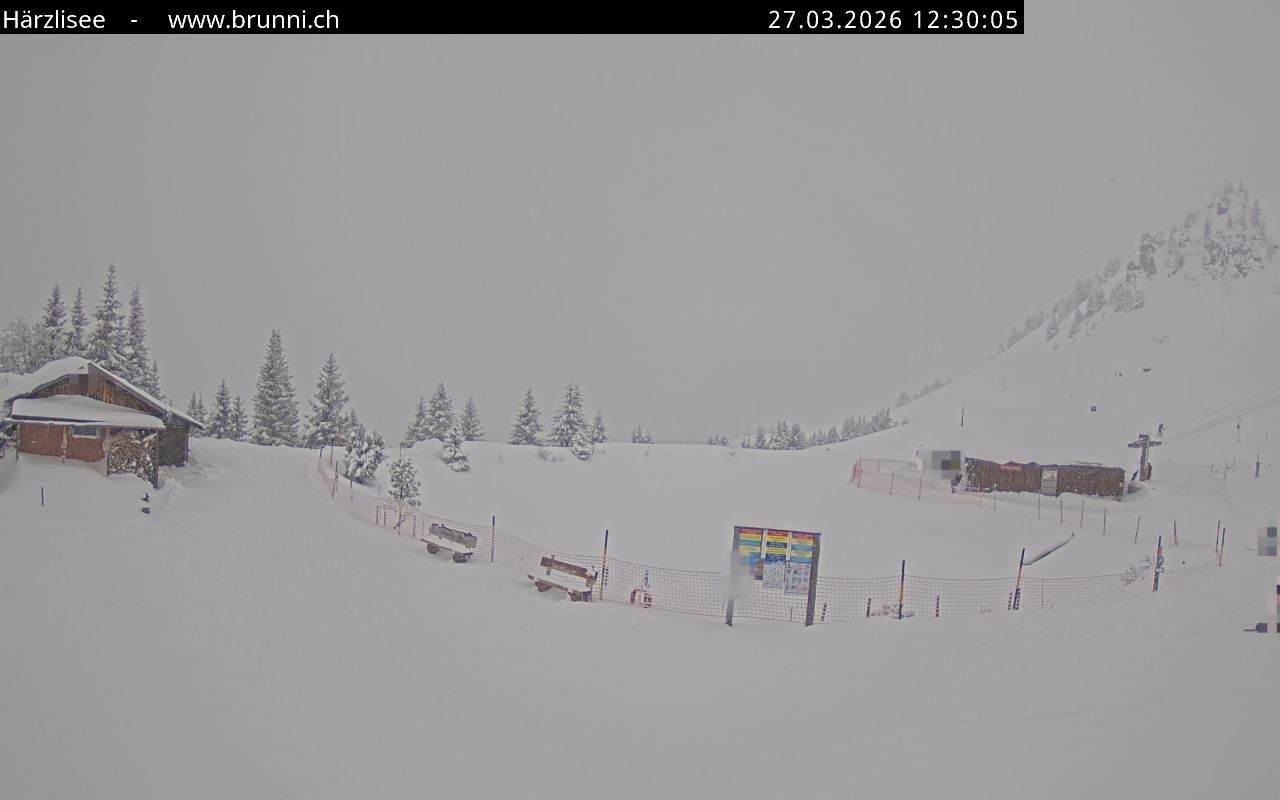Archived webcam image showing Engelberg: Lake Härzlisee & mountain restaurant Kräuterhütte on 27 Mar 2026 at 12:00 11:00