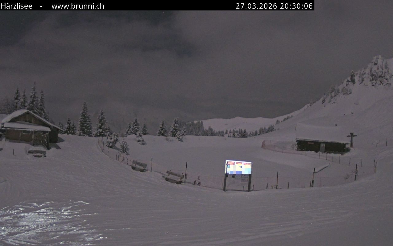 Archived webcam image showing Engelberg: Lake Härzlisee & mountain restaurant Kräuterhütte on 27 Mar 2026 at 02:00 01:00