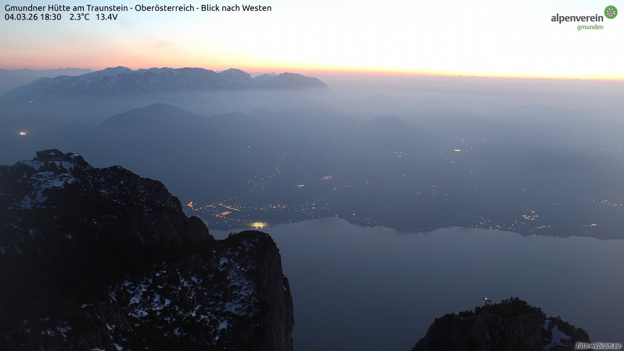 Enjoy the view of lake Traunsee from the Gmundner Hütte at Traumstein mountain.