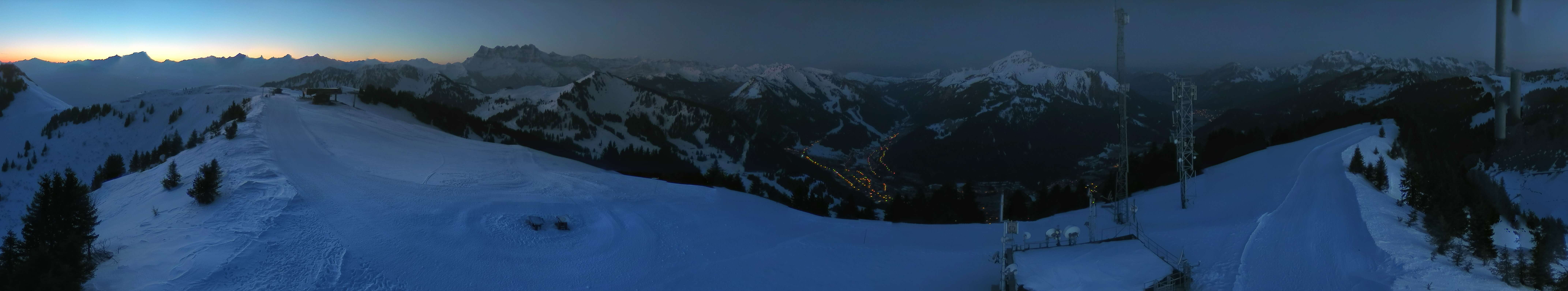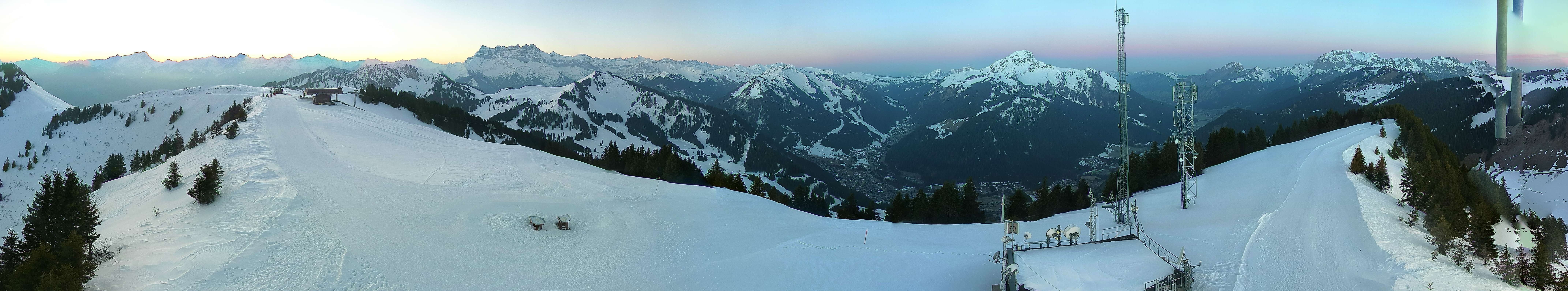The webcam is situated close to Châtel village in the ski resort Portes du Soleil and shows Morclan plateau area.