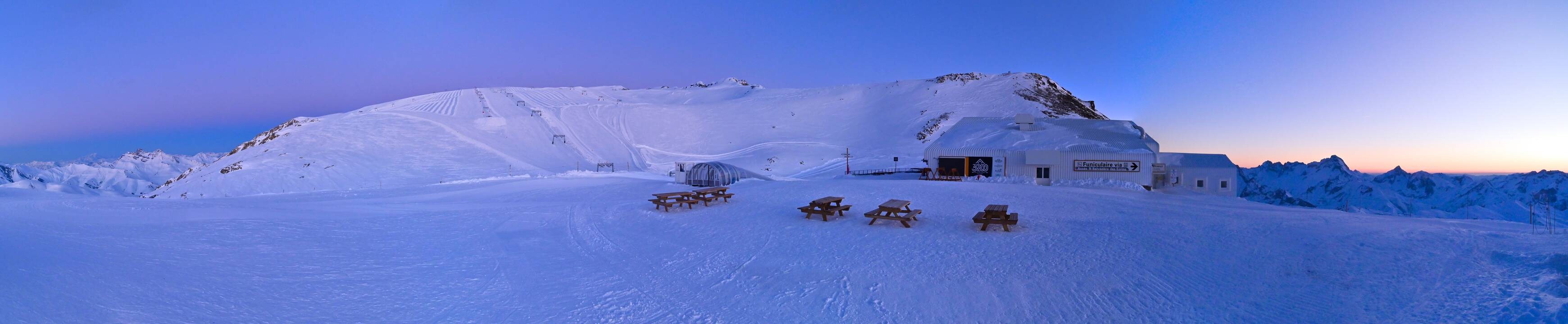 This webcam is located at the top station of chairlift Glacier at 3.200 meter. It offers the view towards the t-bar lifts Puy-Salie I+II and towards the restaurant Les Glaciers in the french ski resort Les Deux Alpes (Isère).