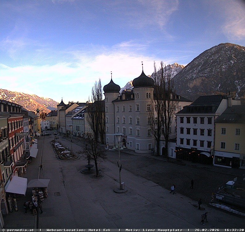 Archived webcam image showing Lienz city on 26 Feb 2026 at 16:00 Latest