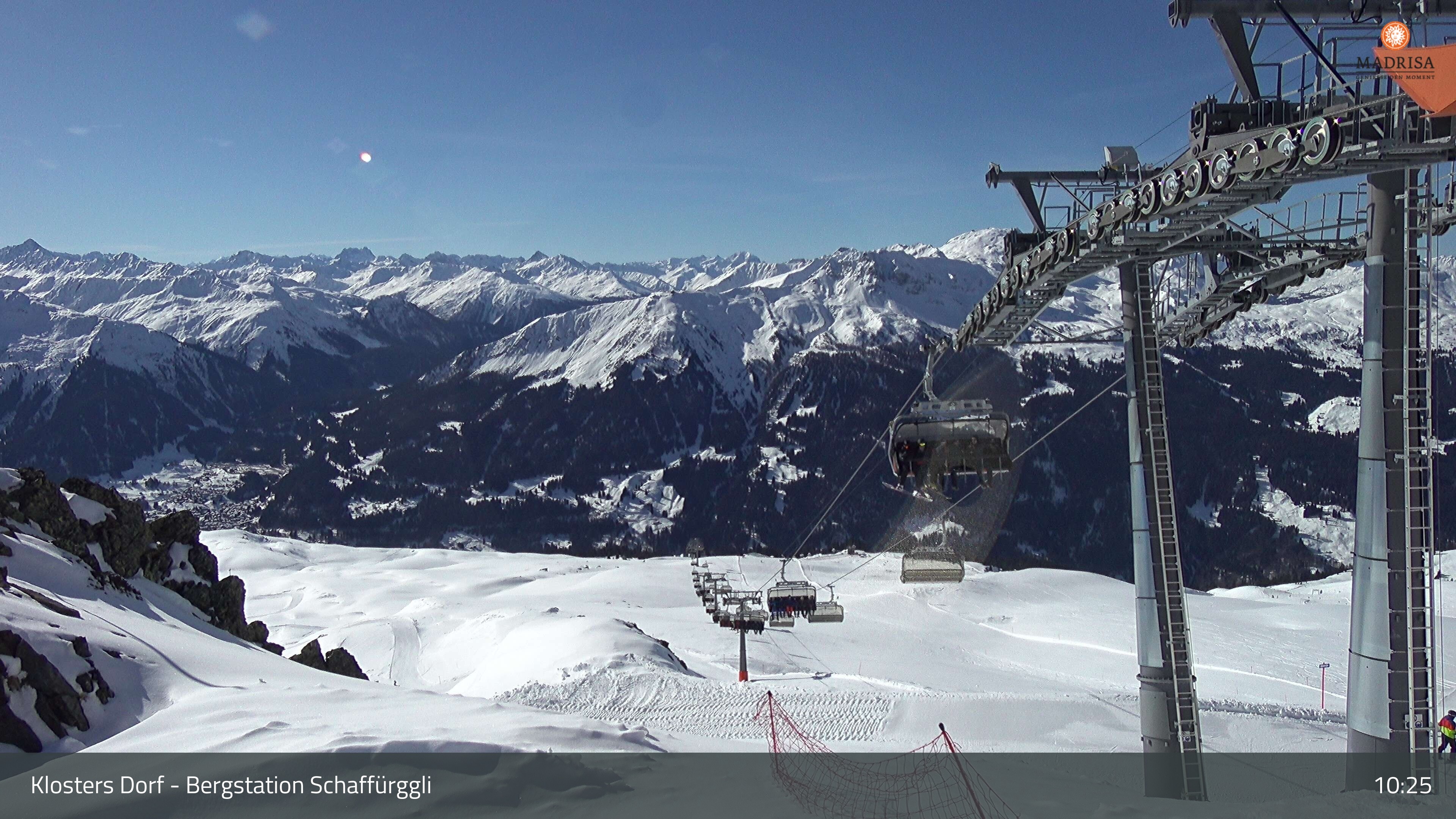 The webcam is located in the Madrisa Ski Resort in Klosters.