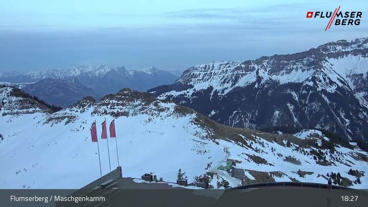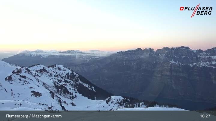Archived webcam image showing Flumserberg: View Maschgenkamm on 13 Mar 2026 at 19:14 Latest