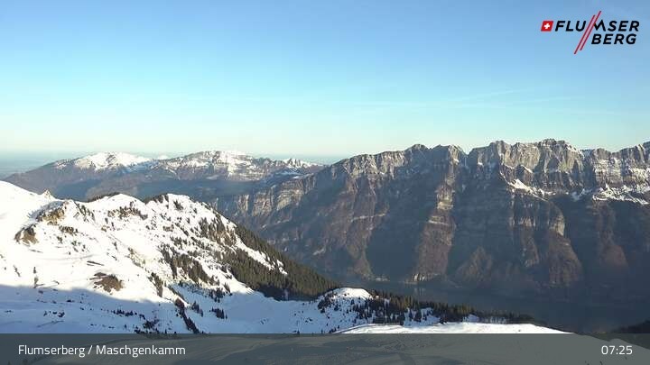 Archived webcam image showing Flumserberg: View Maschgenkamm on 13 Mar 2026 at 07:14 06:00