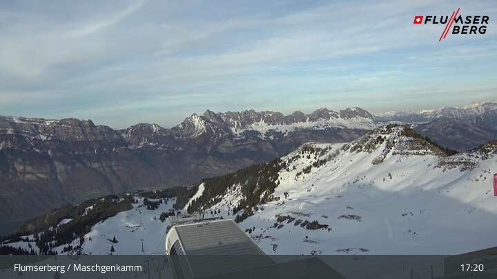 Archived webcam image showing Flumserberg: View Maschgenkamm on 13 Mar 2026 at 17:14 16:00