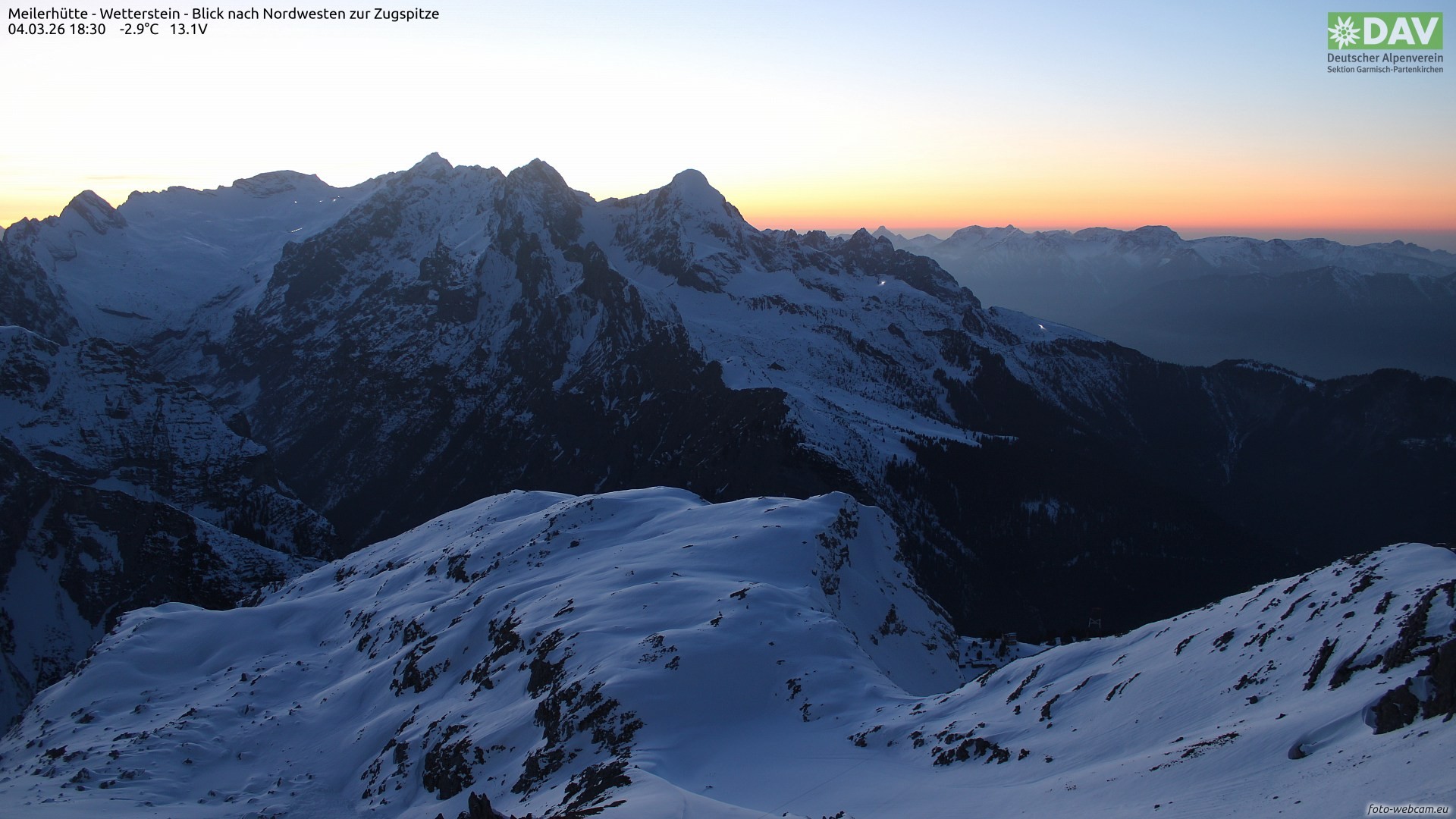 View from Meiler mountain hut direction northwest on Zugspitze mountain.