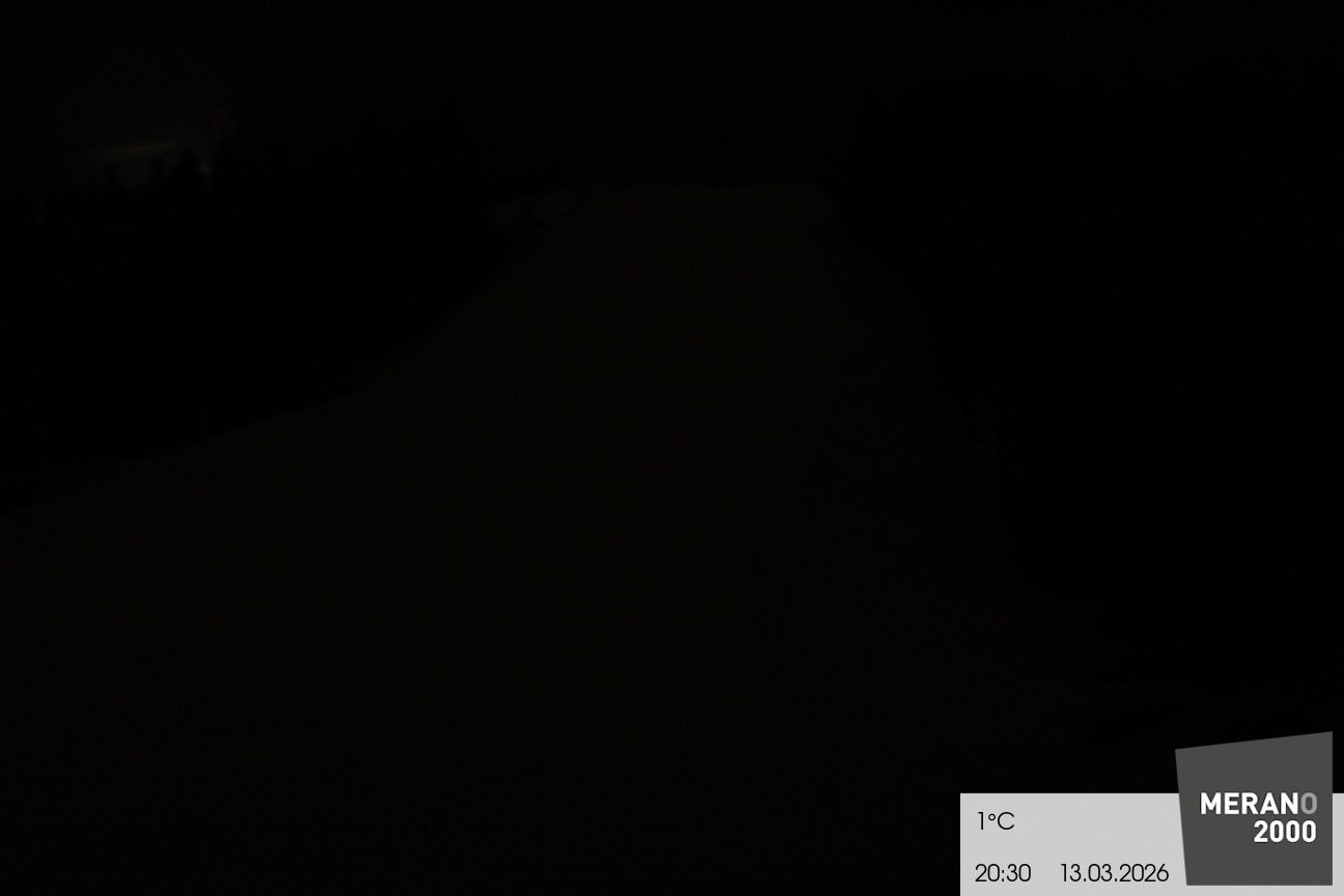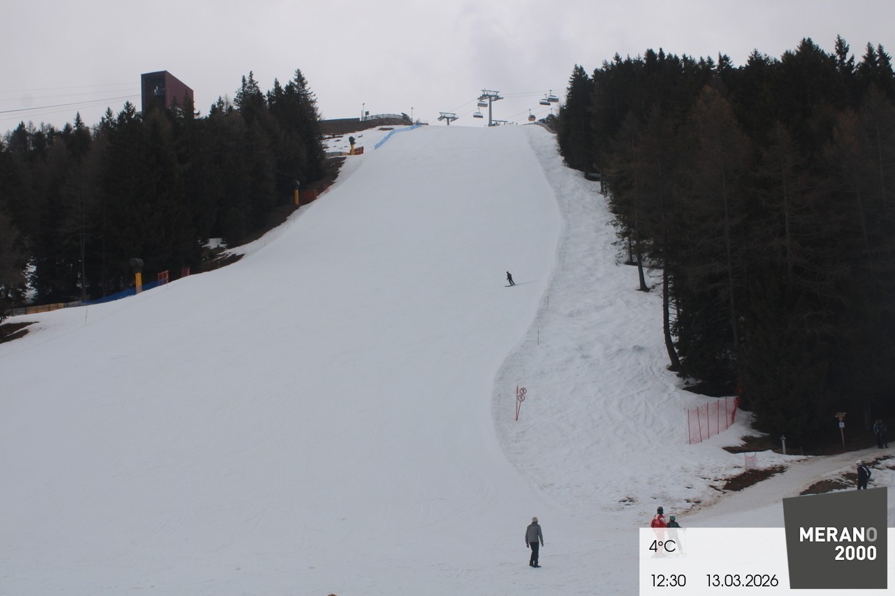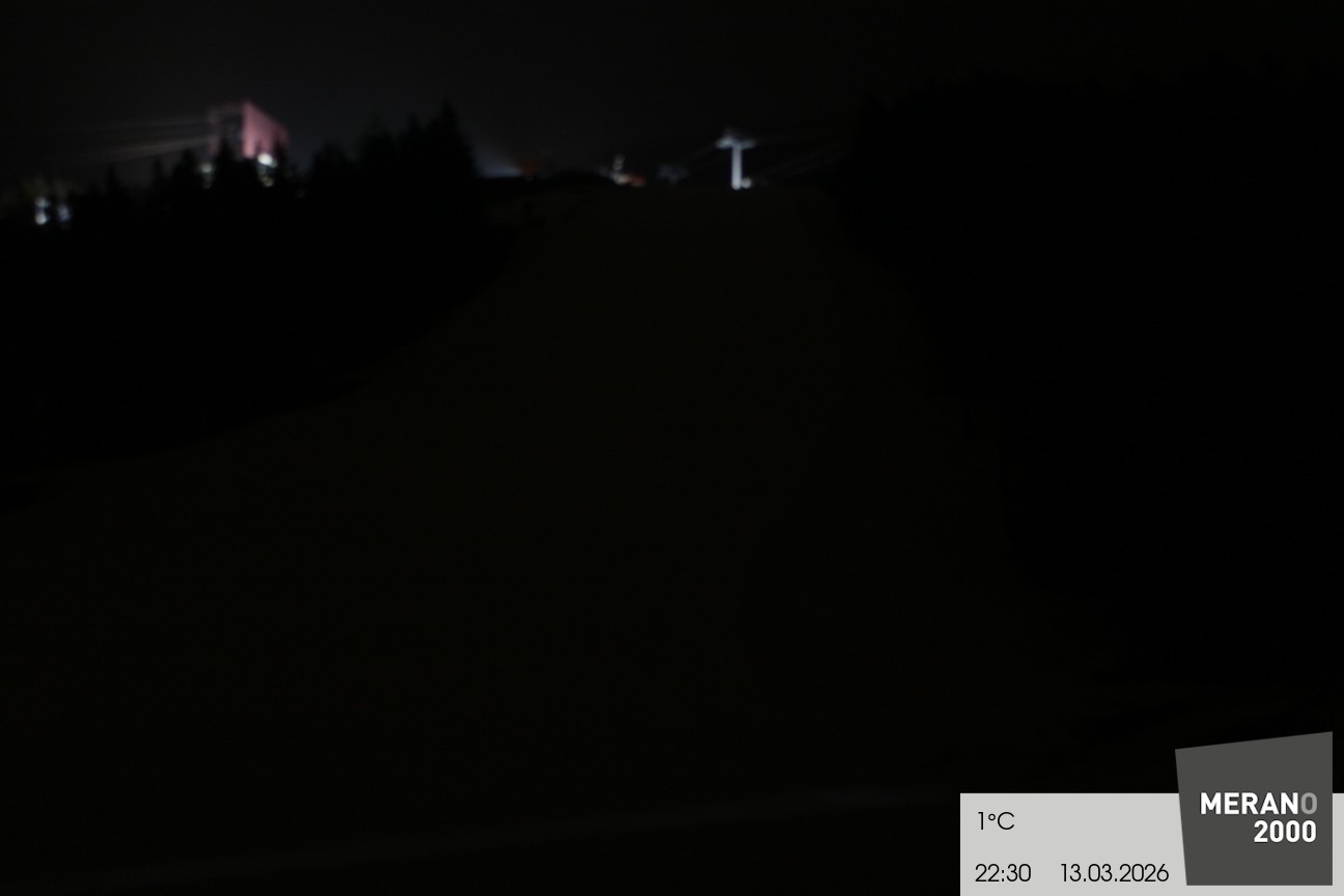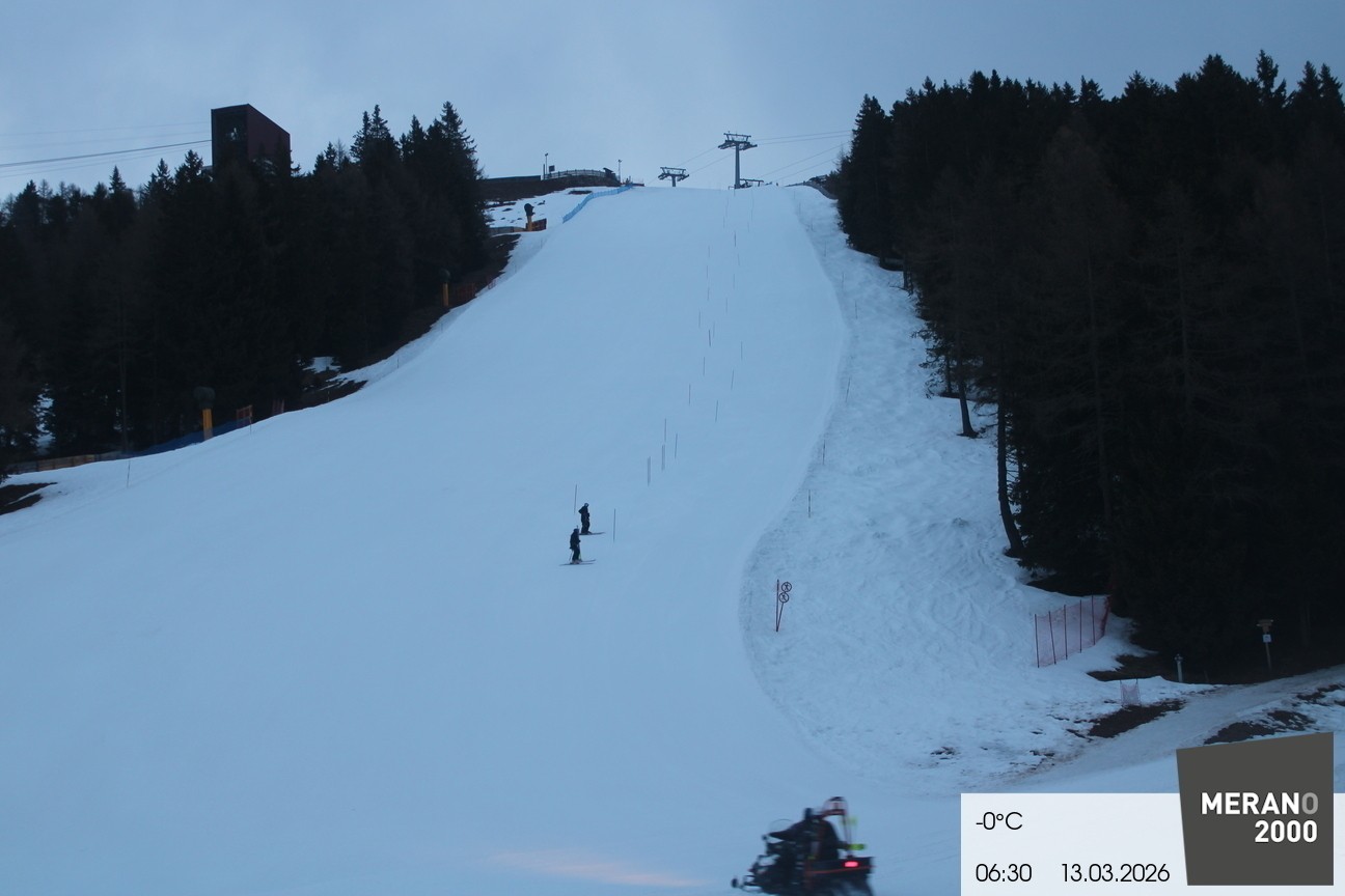 Your view of the steep slope Falzleben II in the ski area Meran 2000. Furthermore you can see the top stations of the ropeway and the chair lift Wallpach.