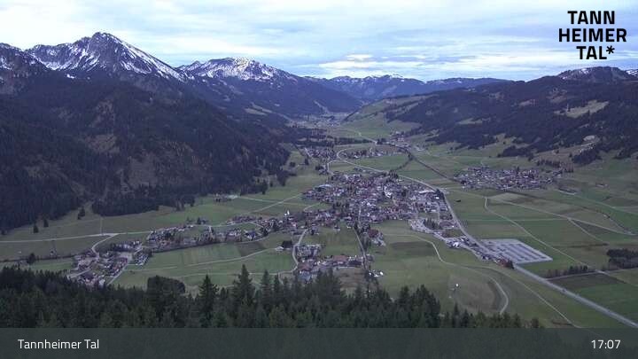 The webcam is located at the mid station of Neunerkoepfle and shows Tannheim valley.