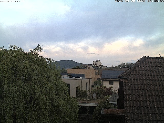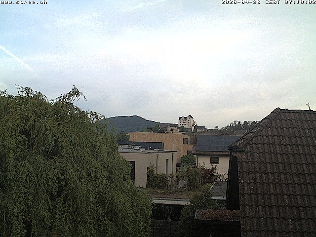 Archived webcam image showing Möriken village - View Castle Wildegg on 28 Apr 2026 at 07:16 06:00