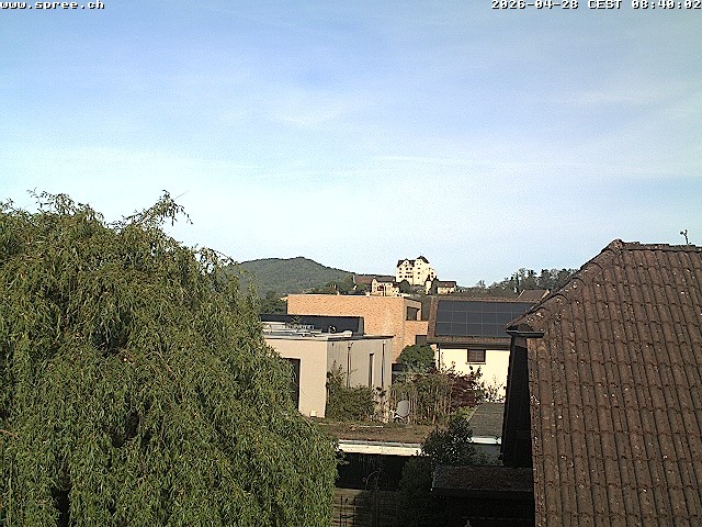Archived webcam image showing Möriken village - View Castle Wildegg on 28 Apr 2026 at 08:16 07:00
