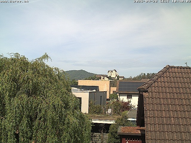 Archived webcam image showing Möriken village - View Castle Wildegg on 28 Apr 2026 at 10:16 Latest