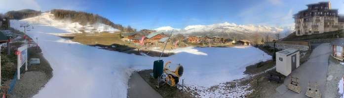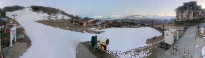 Archived webcam image showing La Plagne - Base station chairlift Montchavin on 28 Mar 2026 at 06:29 05:00