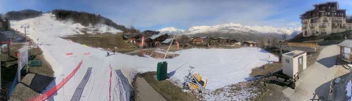 This webcam shows the base station of chairlift Montchavin. The lift is part of the ski resort La Plagne in the region Rhône Alpes.