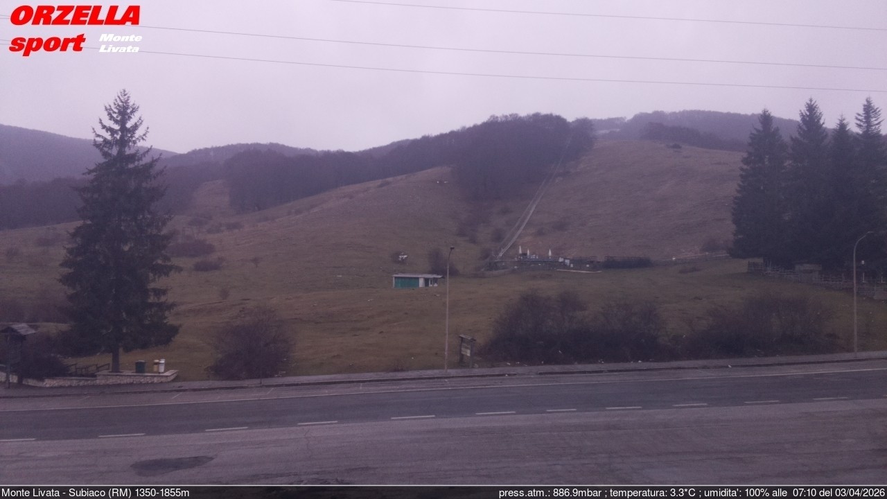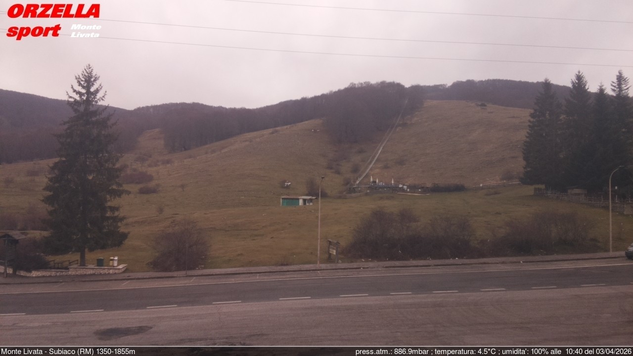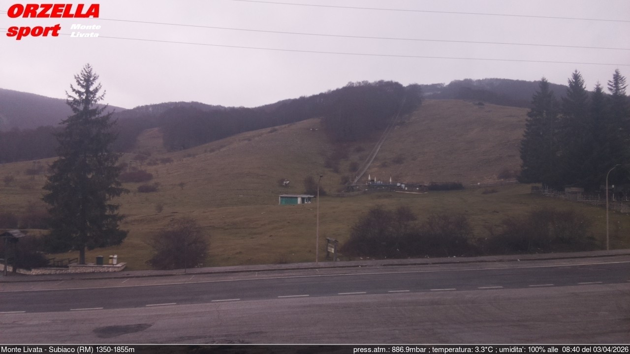 The webcam is located at the base station of the Monte Livata ski resort in Italy.